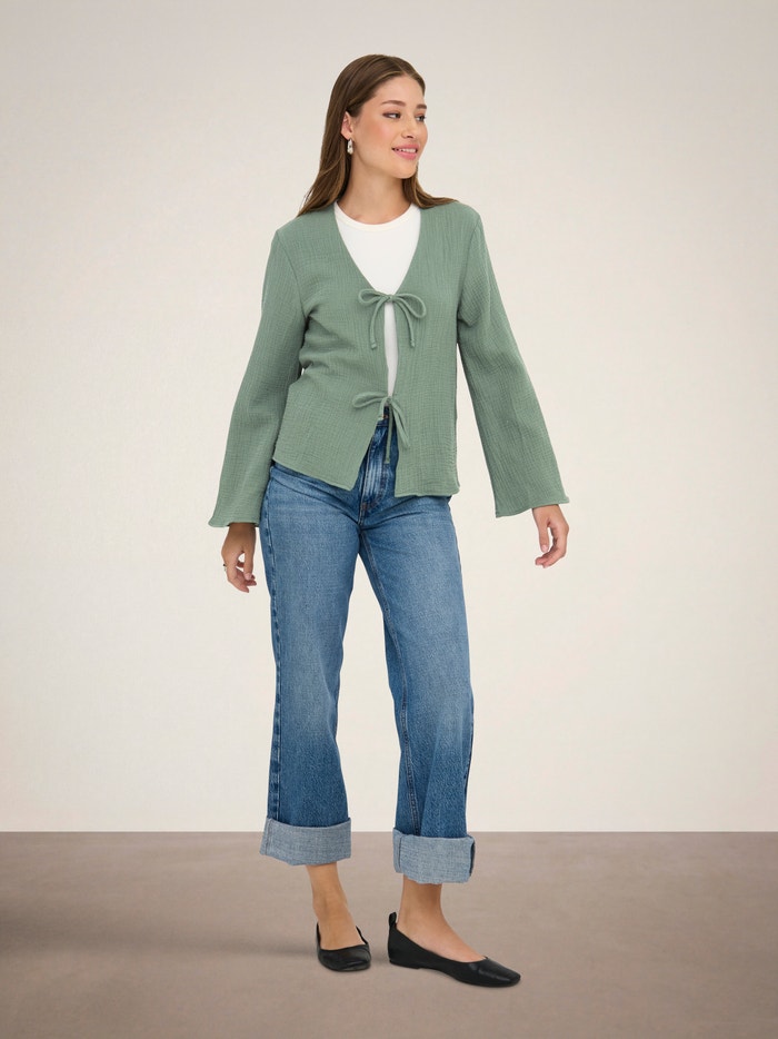 Promijenite svoju svakodnevnu odjeću u sekundi dodavanjem ženstvenog vrha za mekan, čist izraz.