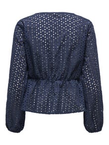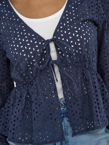 Promijenite svoju svakodnevnu odjeću u sekundi dodavanjem ženstvenog vrha za mekan, čist izraz. - Vrsta proizvoda : Peplum vrh - Vrat : V-izrez - Rukav : 7/8 Rukavi (7/8) - Lisice : Zakopčane manžete - Zatvaranje : Pričvršćivanje niza - Dodatni detalji : Broderie anglaise detalj - Pristajati : Redovno prianjanje