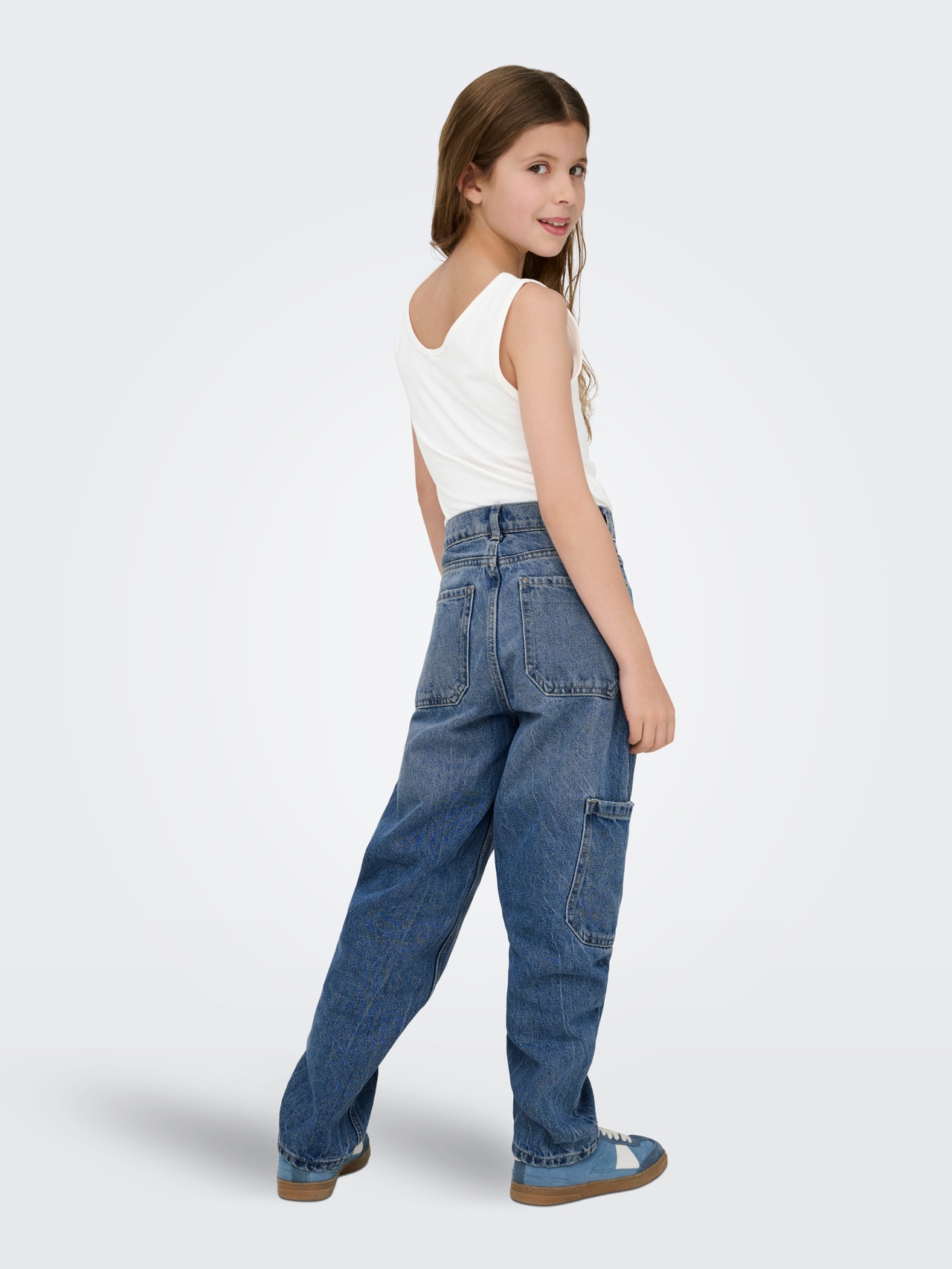 Naš model je visok 137 cm i nosi veličinu 134/140