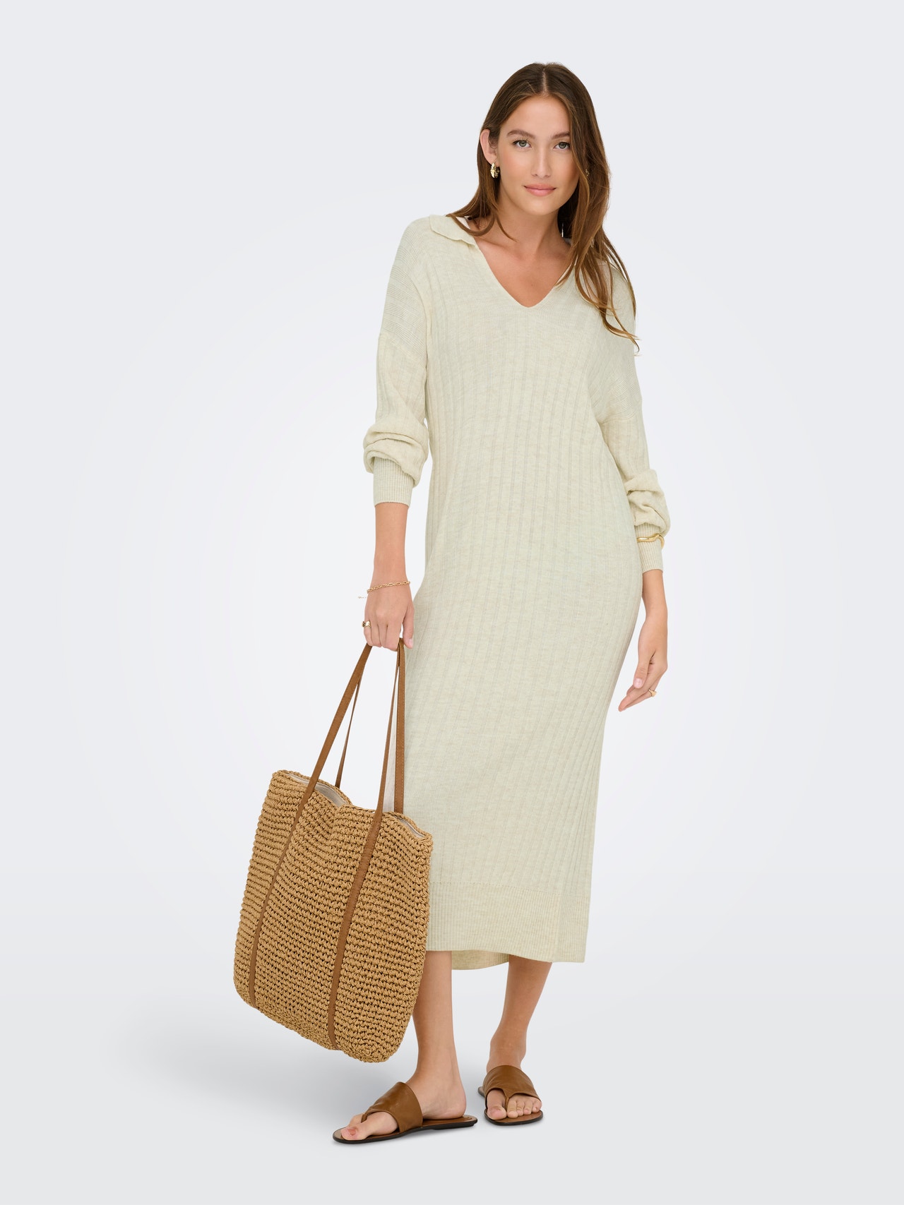 Pripremite svoju garderobu za hladne dane s lijepom pletenom haljinom, savršeno usklađenom s parom tajica ili traperica.