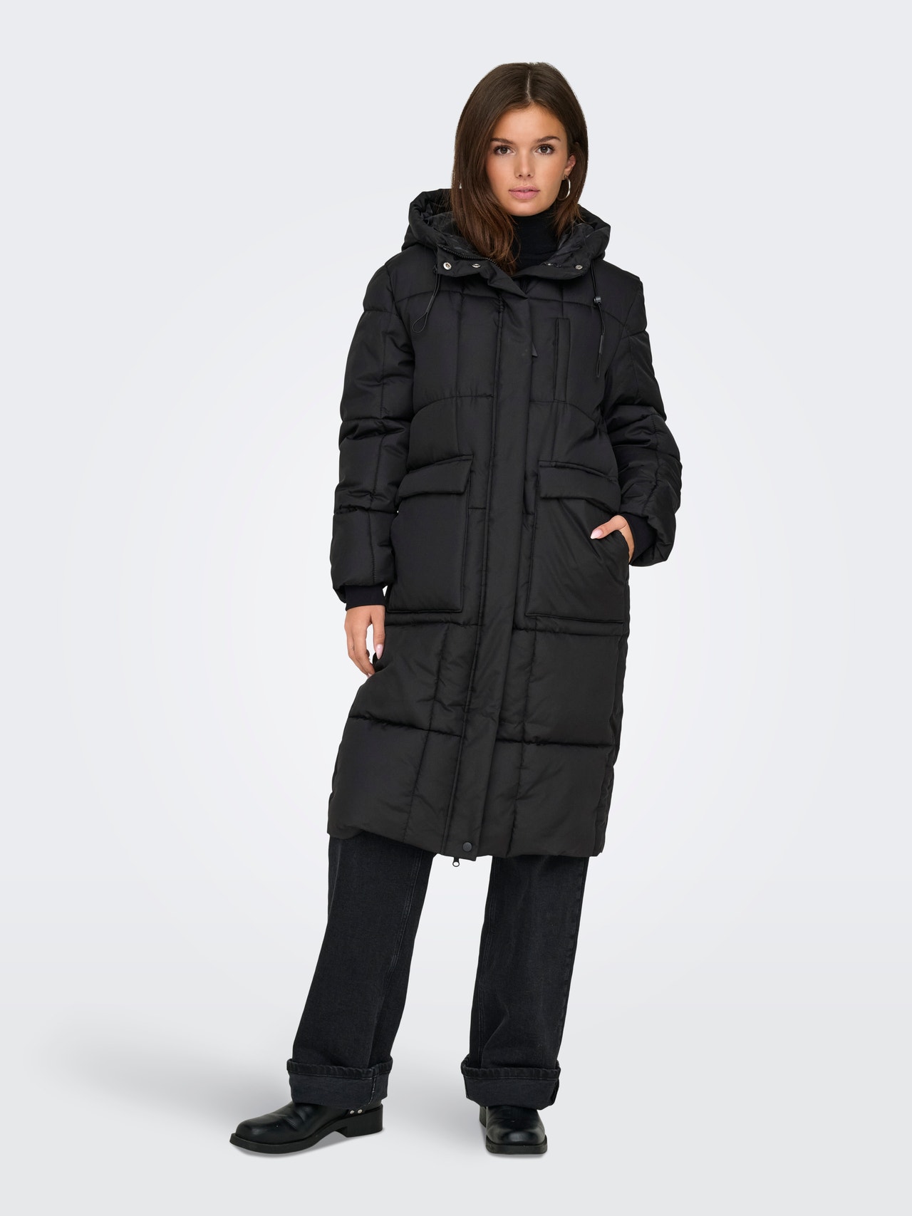 Kapucni zsinórszabályozással Bordázott mandzsetta Kabát