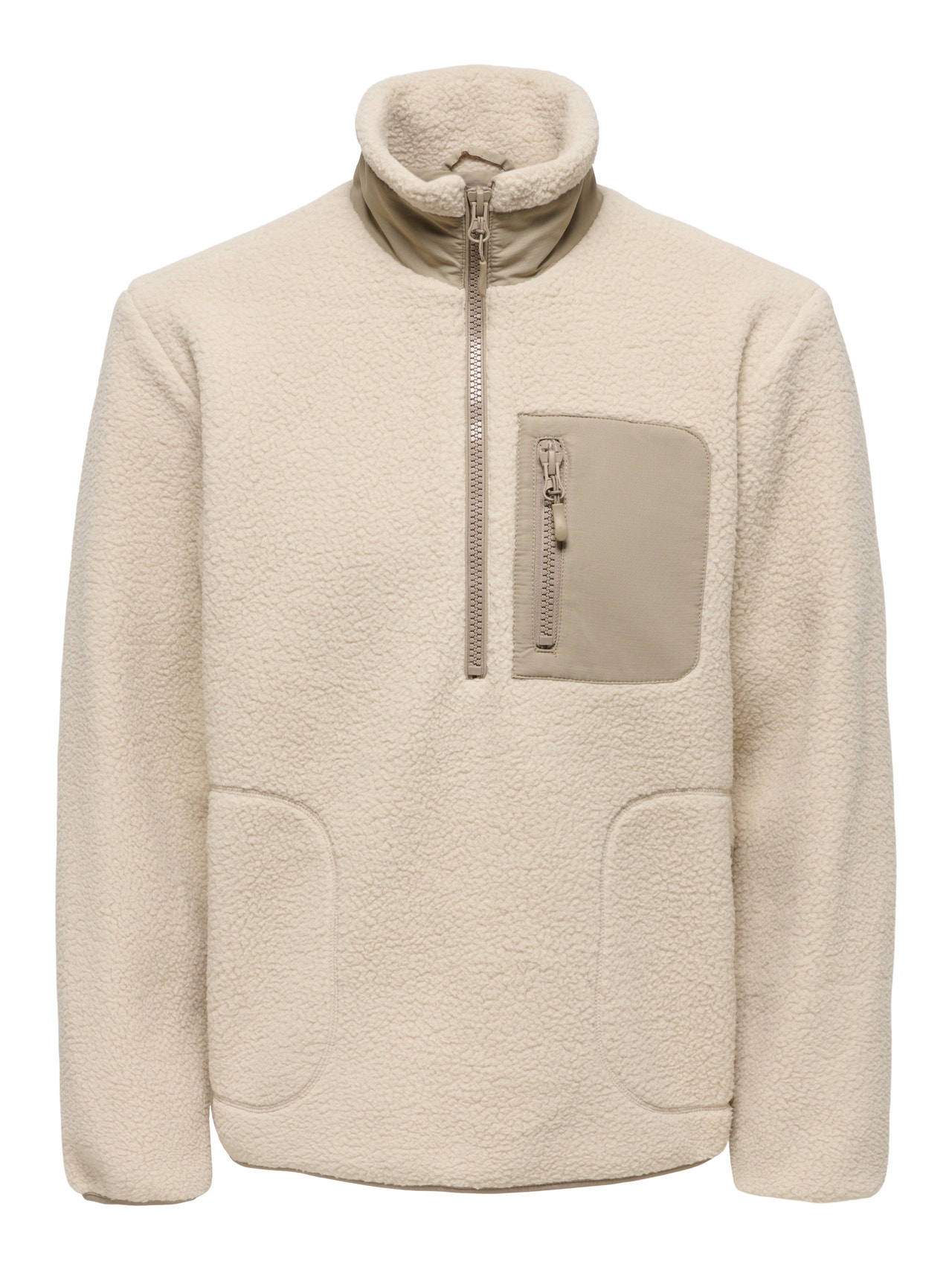 - Zsebek : Cipzáros mellzsebek, Elülső zsebek cipzáros záródással