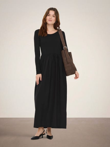 Ricorda che non hai bisogno di un motivo speciale per indossare un bell'abito. È risaputo che l'abito giusto ci fa sentire più sicure di noi, quindi perché non indossarne uno quando ci pare, anche solo per andare a fare la spesa? Un abito lungo e voluminoso ti camberà completamente prospettiva. Per non sentire freddo, aggiungi un trench o una giacca di jeans.