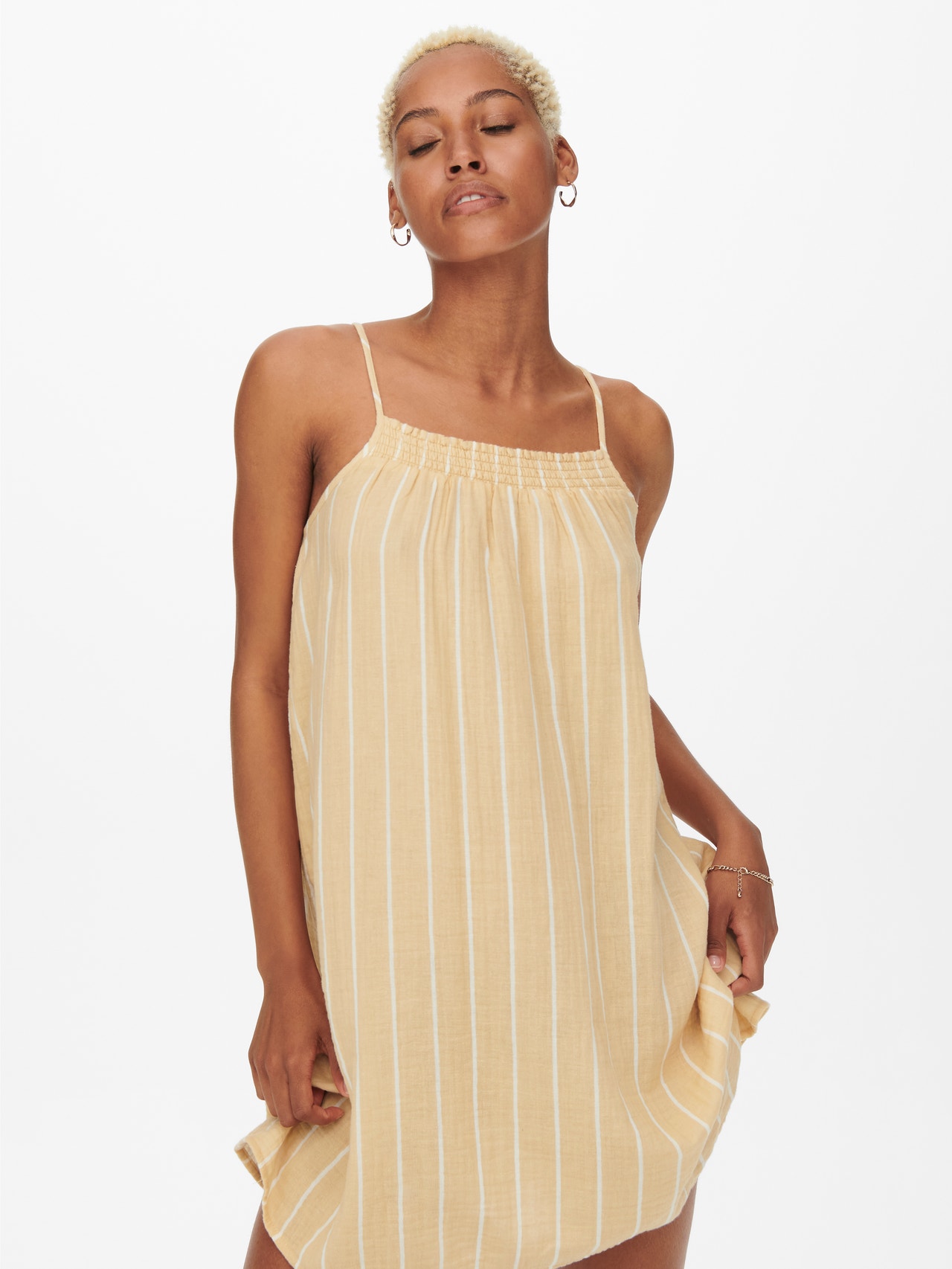 - Tipologia di prodotto : Vestito - Collo : Scollo a U - Manica : Senza maniche - Dettagli : Dettaglio smock - Vestibilità : Loose Fit