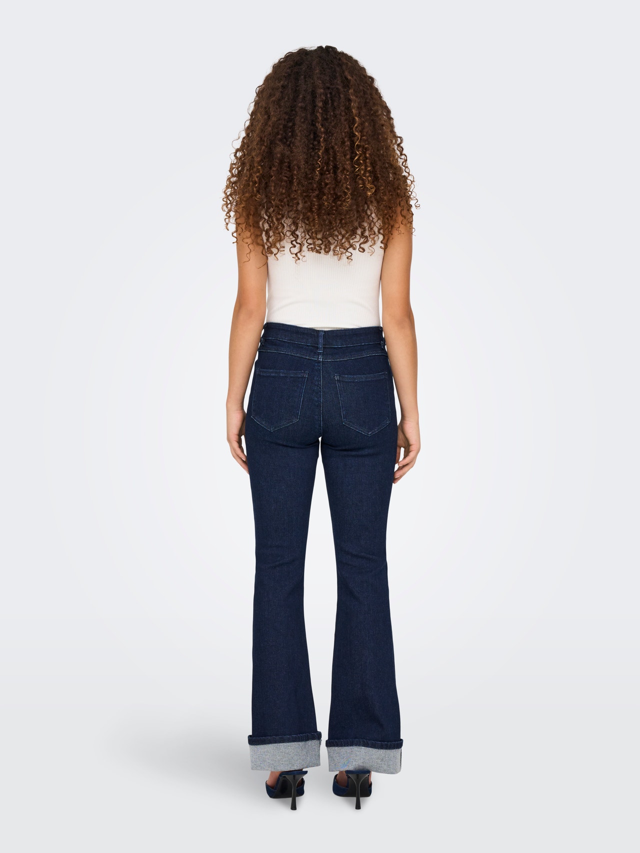 - Vestibilità : Questi jeans flare avvolgono fianchi e cosce e si allargano dal ginocchio in giù