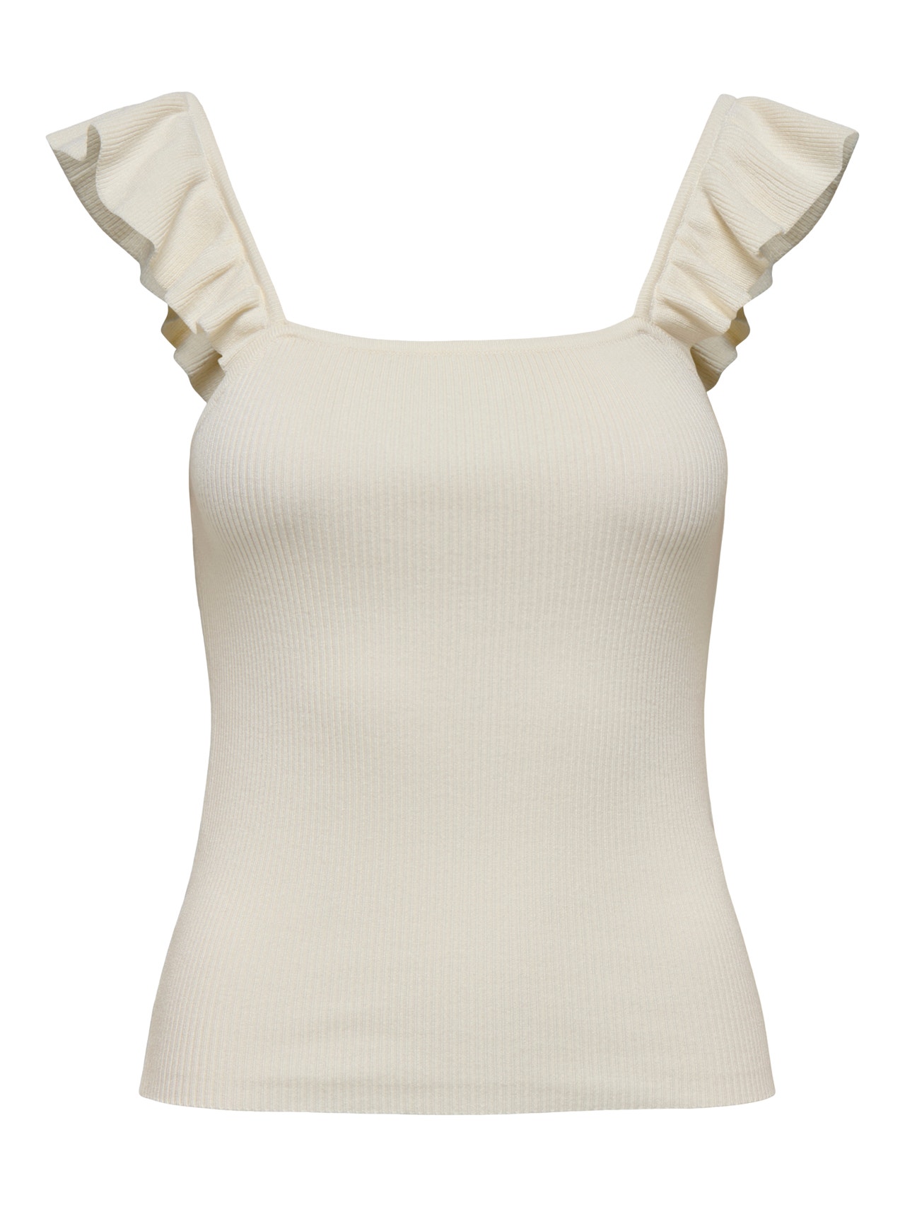Completa il tuo look con un maglione femminile e senza tempo, e aggiungi una nota di morbidezza e calore. La maglia piatta è un tipo di lavorazione a maglia caratterizzata da elasticità, comfort e aspetto pulito. JDY è un marchio internazionale di moda full-concept che propone prodotti accessibili e di tendenza ai consumatori attenti alla moda. - Tipologia di prodotto : Top in maglia - Collo : Scollo Quadrato - Manica : Senza maniche - Dettagli : Volant - Vestibilità : Knit Fit