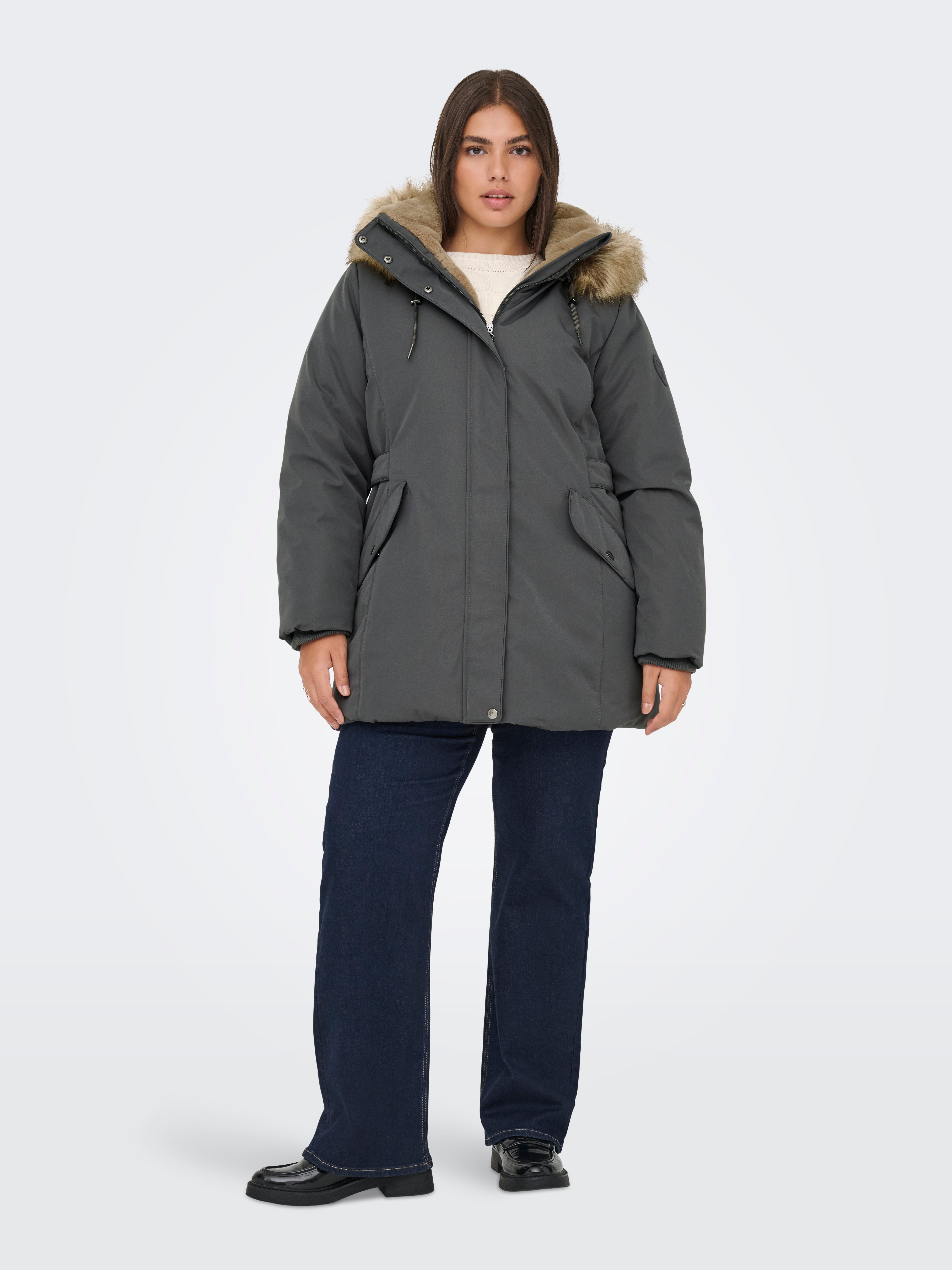 - Collo : Cappuccio w. Bordo in pelliccia sintetica staccabile