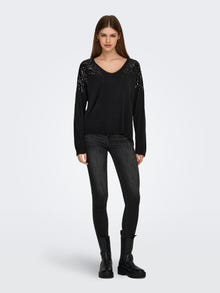 Lasciati avvolgere da una morbida sensazione di calore indossando capi in maglia soffici e perfetti per qualsiasi occasione e stagione. - Tipologia di prodotto : Pullover - Collo : Scollo a V - Manica : Maniche lunghe - Maniche : Spalle cadenti - Dettagli : Dettaglio glitter - Vestibilità : Oversize Fit
