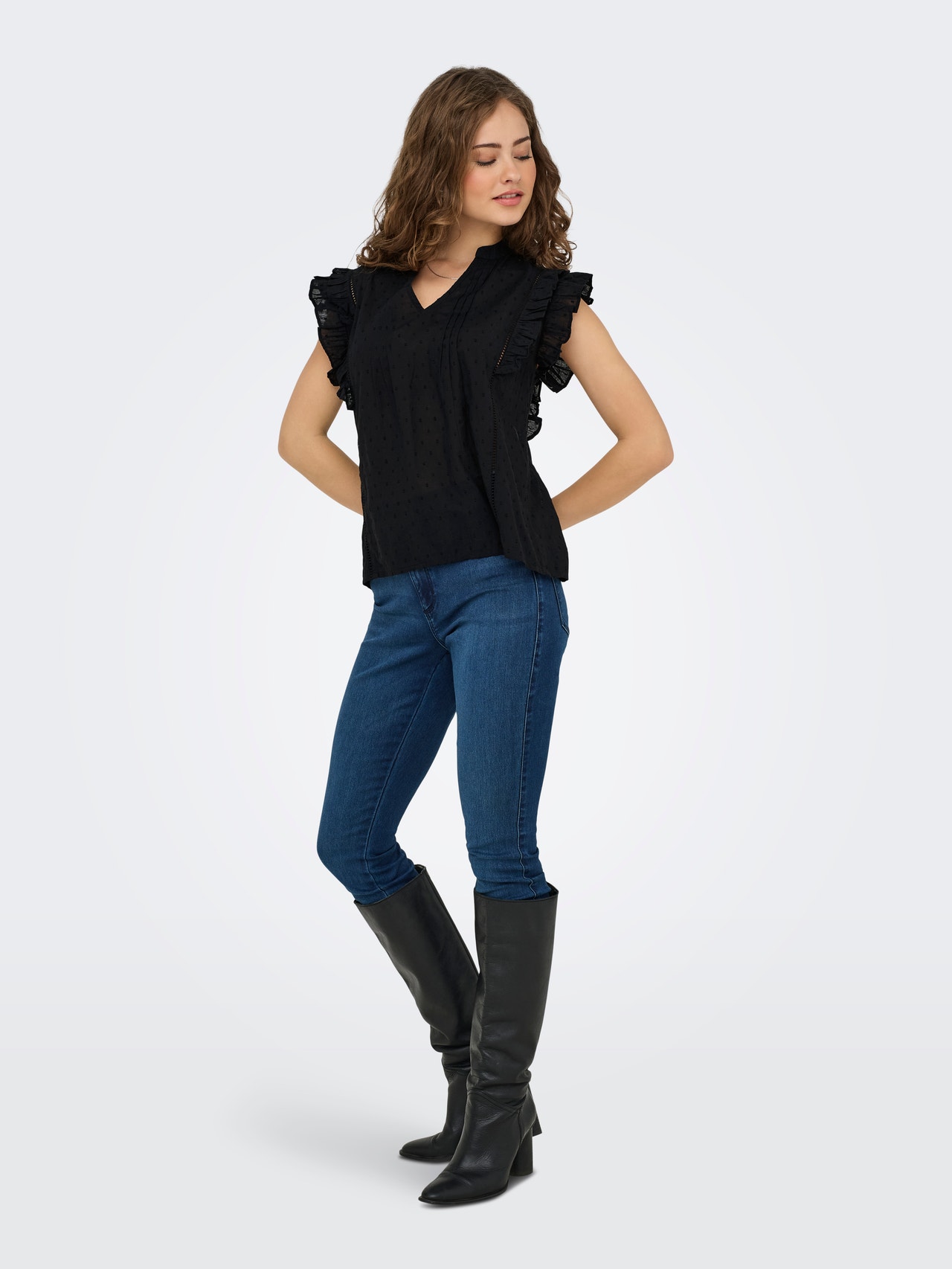 Cambia il tuo outfit quotidiano in un secondo aggiungendo un top femminile, per una dichiarazione di stile delicata e netta.