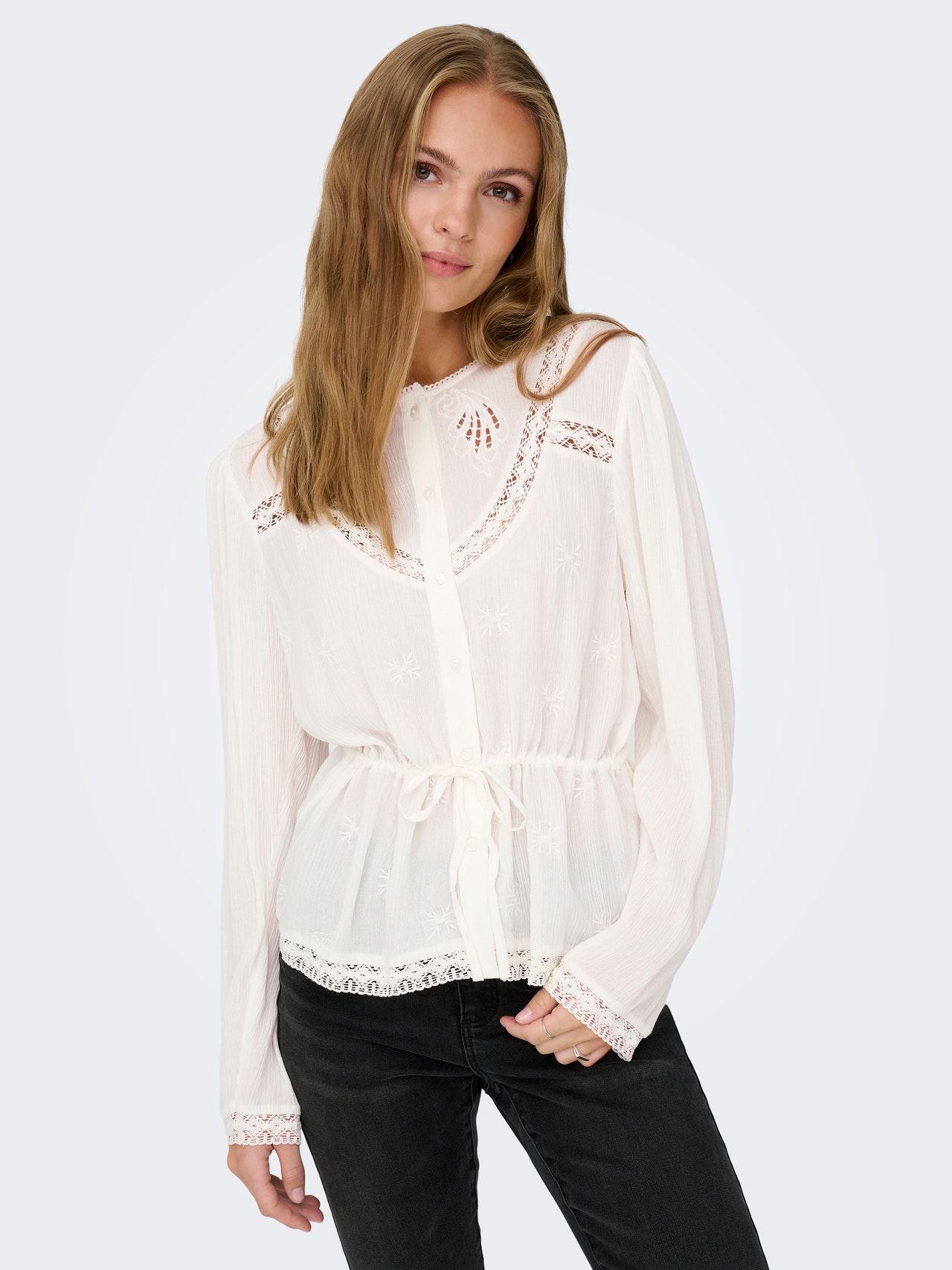 Cambia il tuo outfit quotidiano in un secondo aggiungendo un top femminile, per una dichiarazione di stile delicata e netta.
