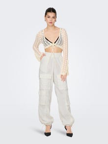 - Produkto tipas : Cargo kelnės - Kišenės : Cargo kišenės, Nugaros kišenės - Juosmuo : Vidutinio aukščio juosmuo - Papildomos detalės : Elastinis juosmuo, Kaklaraiščio eilutės detalė - Tinkamas : Tiesus kirpimas