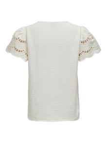 Pakeiskite savo kasdienę aprangą akimirksniu, pridėdami moterišką viršutinę dalį, kad išraiška būtų švelni ir švari. Medvilnė pagaminta iš natūralių pluoštų, sukuriančių minkštą, kvėpuojantį audinį. JDY yra visos koncepcijos, tarptautinis mados prekės ženklas, siūlantis įperkamus ir madingus produktus mada besidominčiam vartotojui. - Produkto tipas : Palaidinės - Kaklas : Apskrita apykaklė - Rankovė : Trumpos rankovės - Rankovės : Didelės apimties rankovės - Papildomos detalės : Nėrinių detalė - Tinkamas : Klasikinis kirpimas