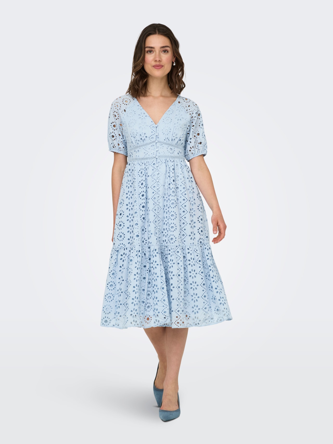 - Produkto tipas : Suknelė - Kaklas : Apskrita apykaklė - Rankovė : 2/4 rankovės - Papildomos detalės : Broderie anglaise detalė - Tinkamas : Laisvas kirpimas
