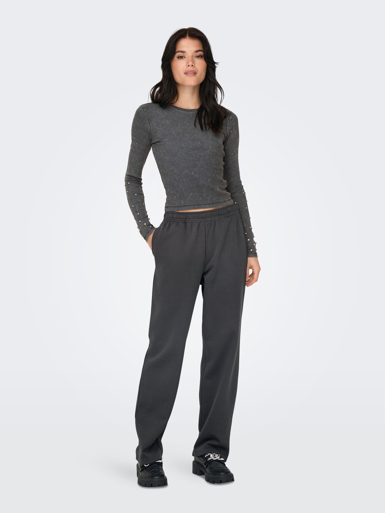 Puikiai atrodykite mokykloje, darbe ir kasdienėje veikloje šauniais stiliais, kuriuos lengva priderinti prie mėgstamiausių drabužių spintos. Medvilnė pagaminta iš natūralių pluoštų, sukuriančių minkštą, kvėpuojantį audinį. - Produkto tipas : Marškinėliai - Kaklas : Apskrita apykaklė - Rankovė : Ilgos rankovės - Papildomos detalės : Krištolo akmenys, Briaunota detalė - Tinkamas : Klasikinis kirpimas