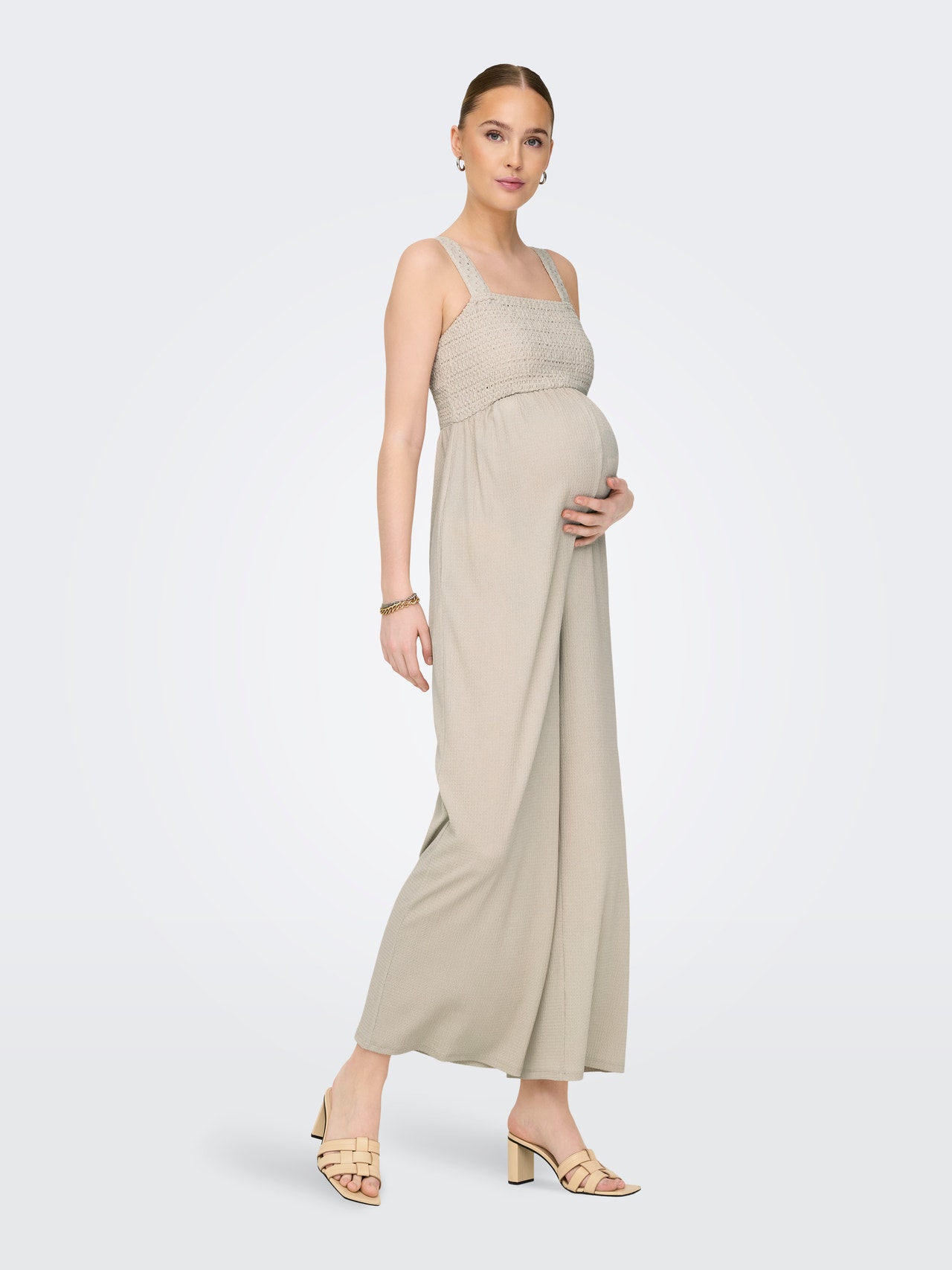 Minimise any potential wardrobe crisis with a cool jumpsuit for a stunning and stylish look in an instant. Maternity styles are designed to fit and support the pregnant body. Choose your regular size for a flattering look. - Product Type : Jumpsuit - Straps : Shoulder straps - Extra details : Smock detail - Body Type : Maternity