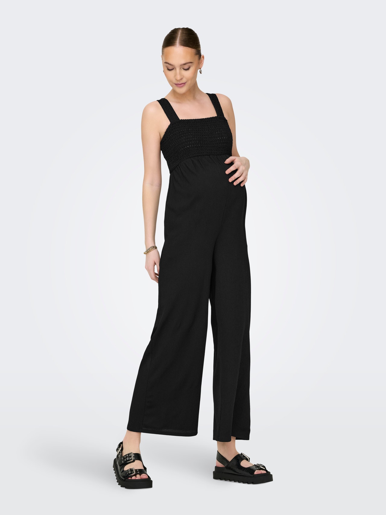 Minimise any potential wardrobe crisis with a cool jumpsuit for a stunning and stylish look in an instant. Maternity styles are designed to fit and support the pregnant body. Choose your regular size for a flattering look. - Product Type : Jumpsuit - Straps : Shoulder straps - Extra details : Smock detail - Body Type : Maternity