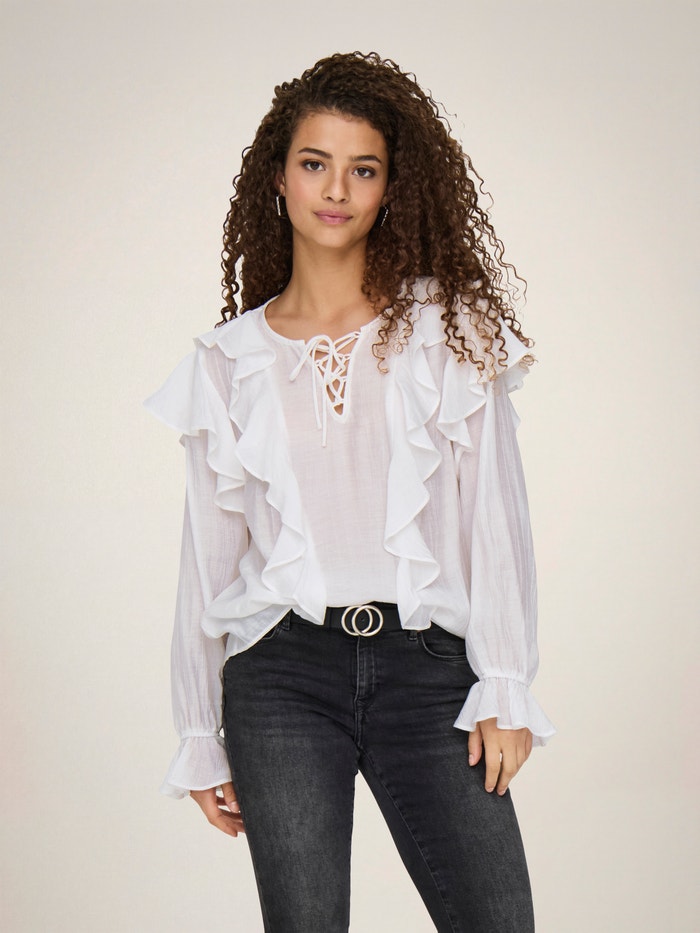 Pakeiskite savo kasdienę aprangą akimirksniu, pridėdami moterišką viršutinę dalį, kad išraiška būtų švelni ir švari.