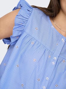 Pakeiskite savo kasdienę aprangą akimirksniu, pridėdami moterišką viršutinę dalį, kad išraiška būtų švelni ir švari. - Produkto tipas : Palaidinės - Kaklas : V formos apykaklė - Rankovė : Be rankovių - Užsegimas : Užsegimas sagomis - Papildomos detalės : Raukiniai, Siuvinėjimas - Tinkamas : Klasikinis kirpimas