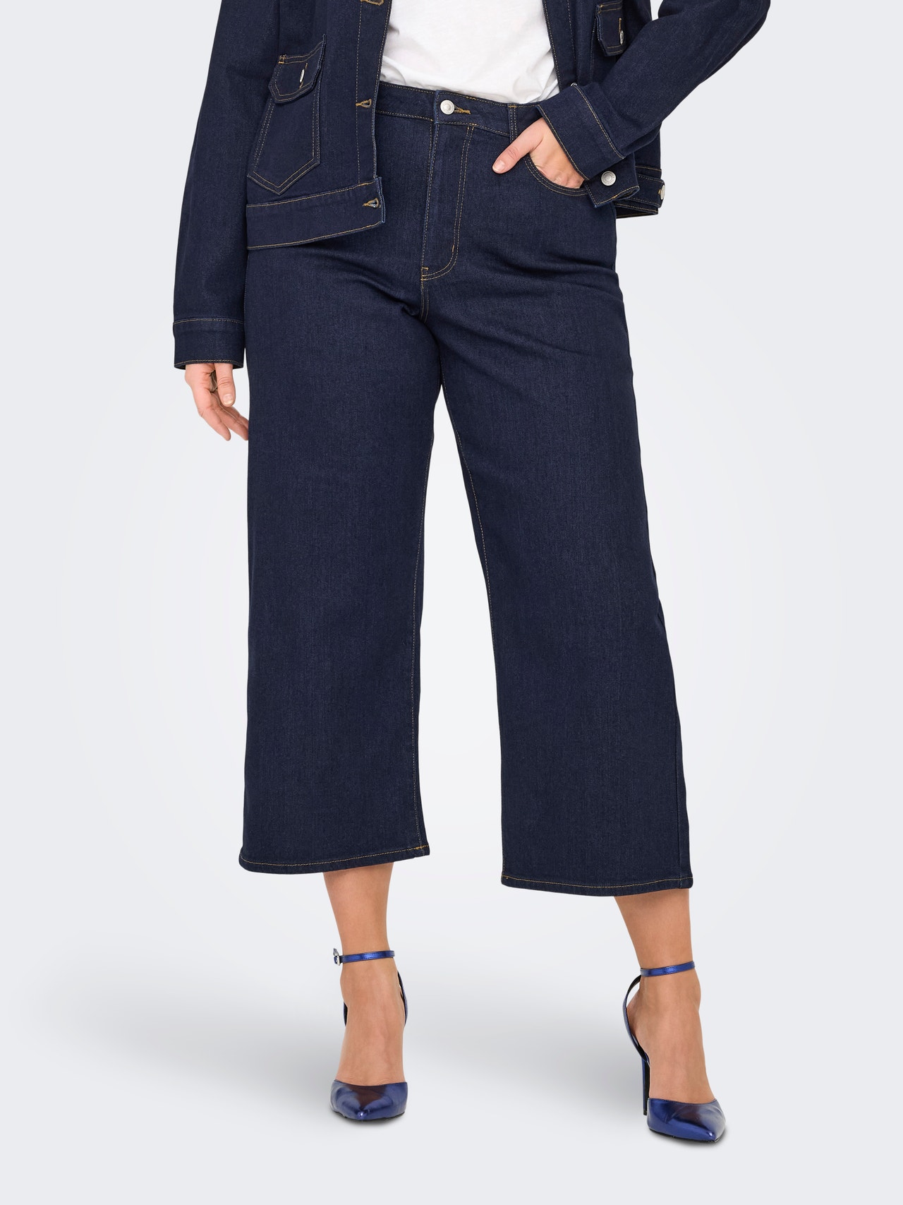 CARMADISON Aukštas juosmuo Plačios klešnės Nukirptas Džinsai