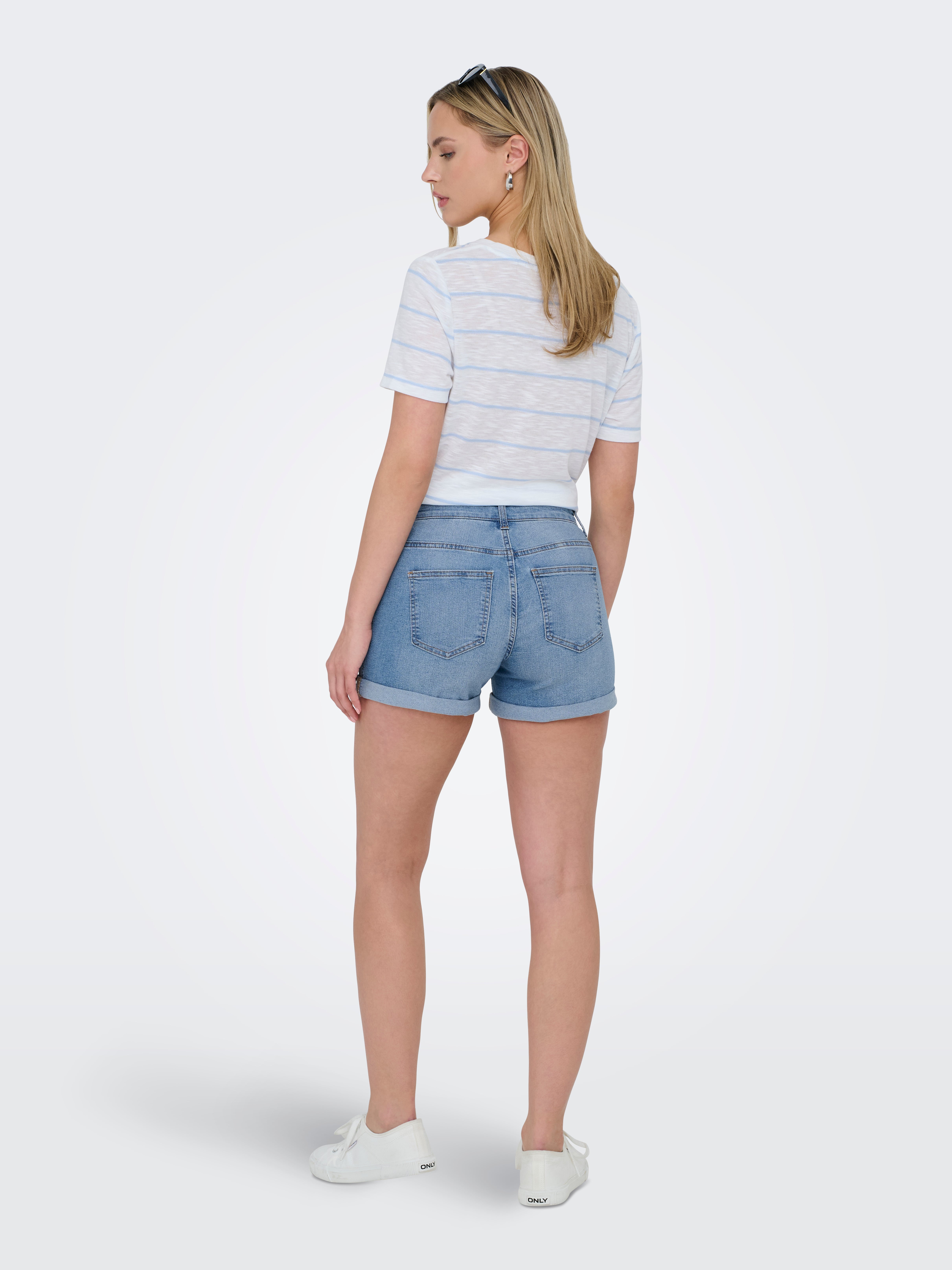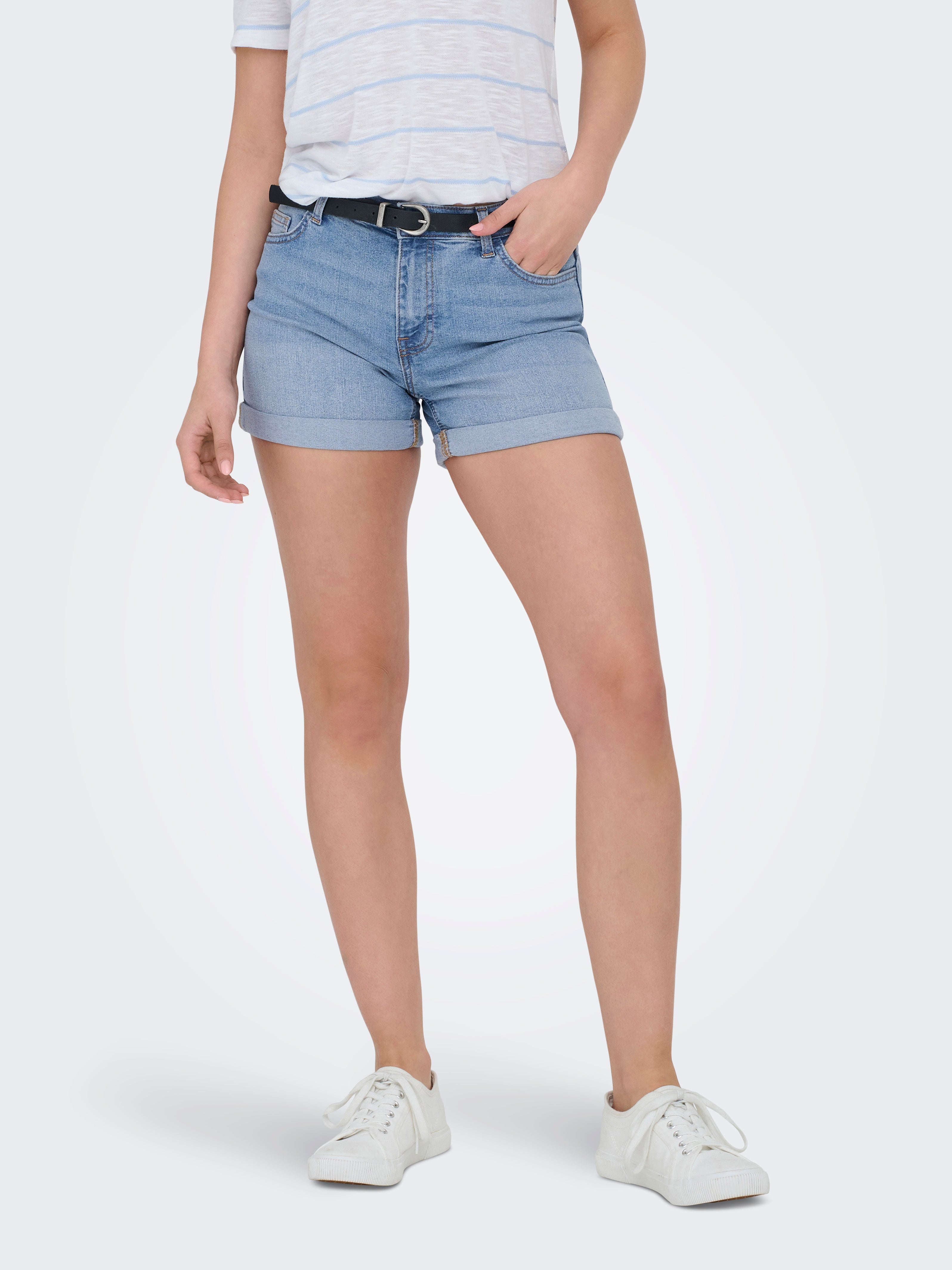 JDYMOON Vidutinio aukščio juosmuo Klasikinis kirpimas Džinsiniai šortai