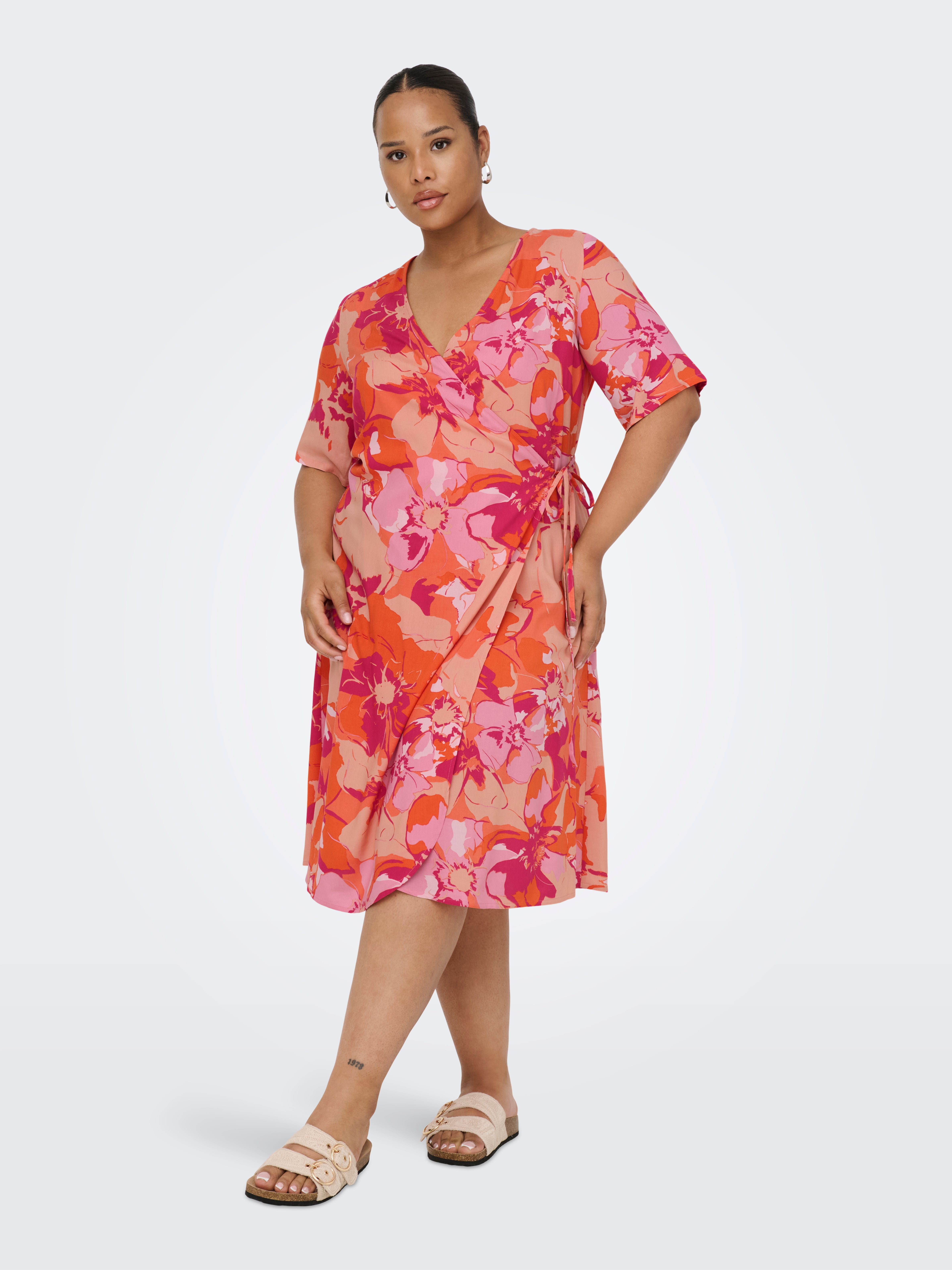 Paryškinkite savo kreives su mūsų plius dydžio suknelėmis iš ONLY CARMAKOMA. Reguliuojamas apvyniojimo dizainas suteikia lankstų prigludimą, kuris prisitaiko prie jūsų kūno ir natūraliai pabrėžia juosmenį. Moteriškos detalės, patogios medžiagos ir stilingas bei patogus siluetas – apvyniojama suknelė yra būtina jūsų drabužių spintoje.