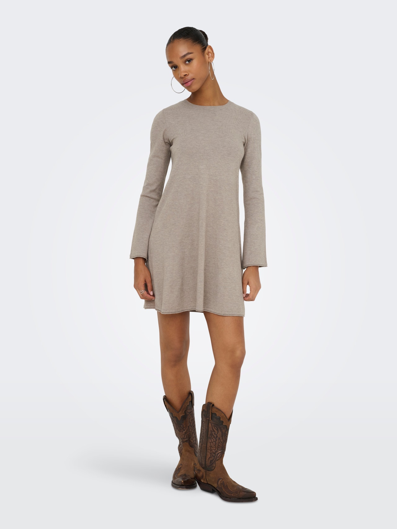 Paruoškite savo garderobą šaltoms dienoms su gražia megzta suknele, puikiai derinama su pėdkelnių ar džinsų pora.