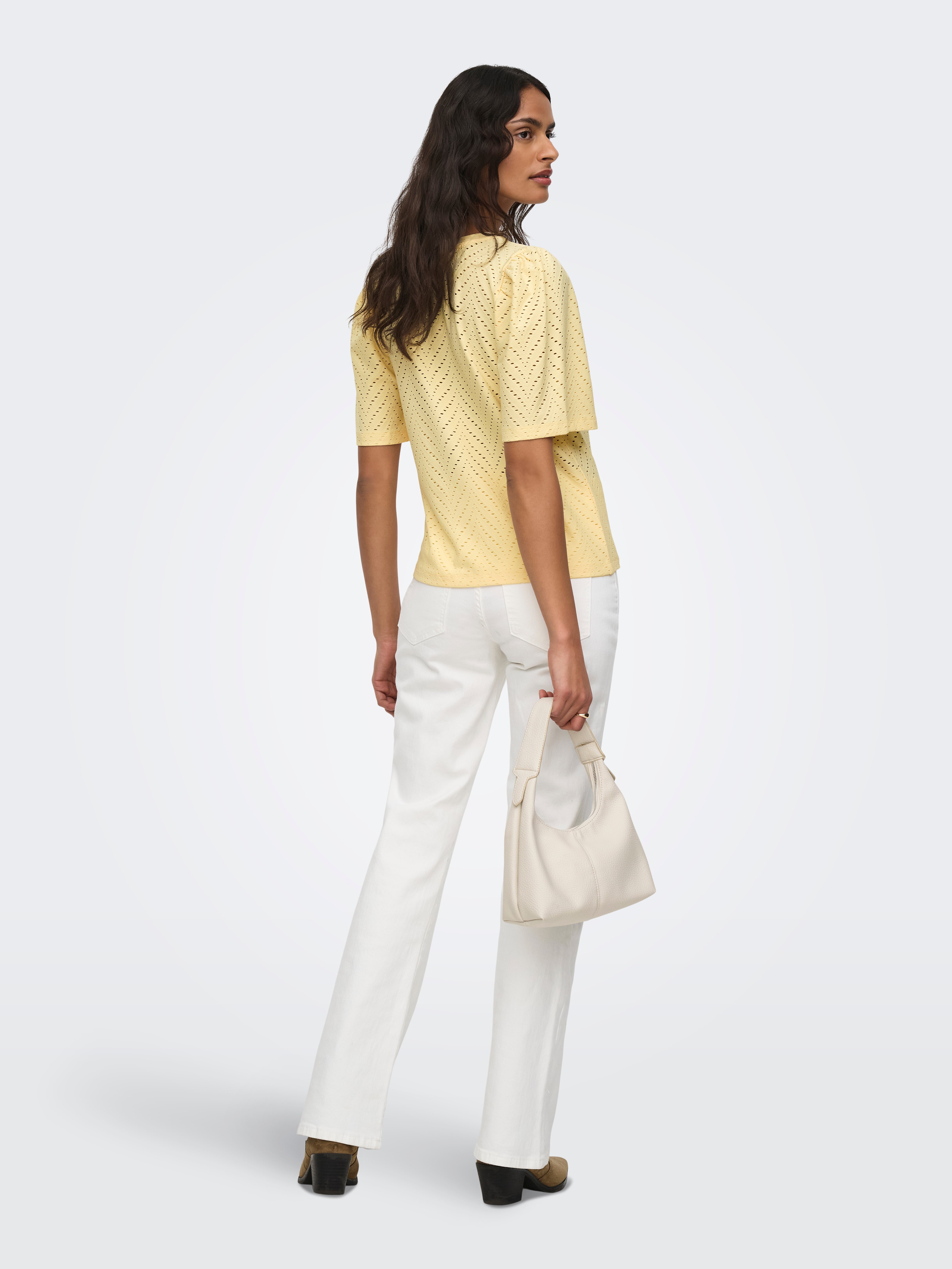 Pakeiskite savo kasdienę aprangą akimirksniu, pridėdami moterišką viršutinę dalį, kad išraiška būtų švelni ir švari.