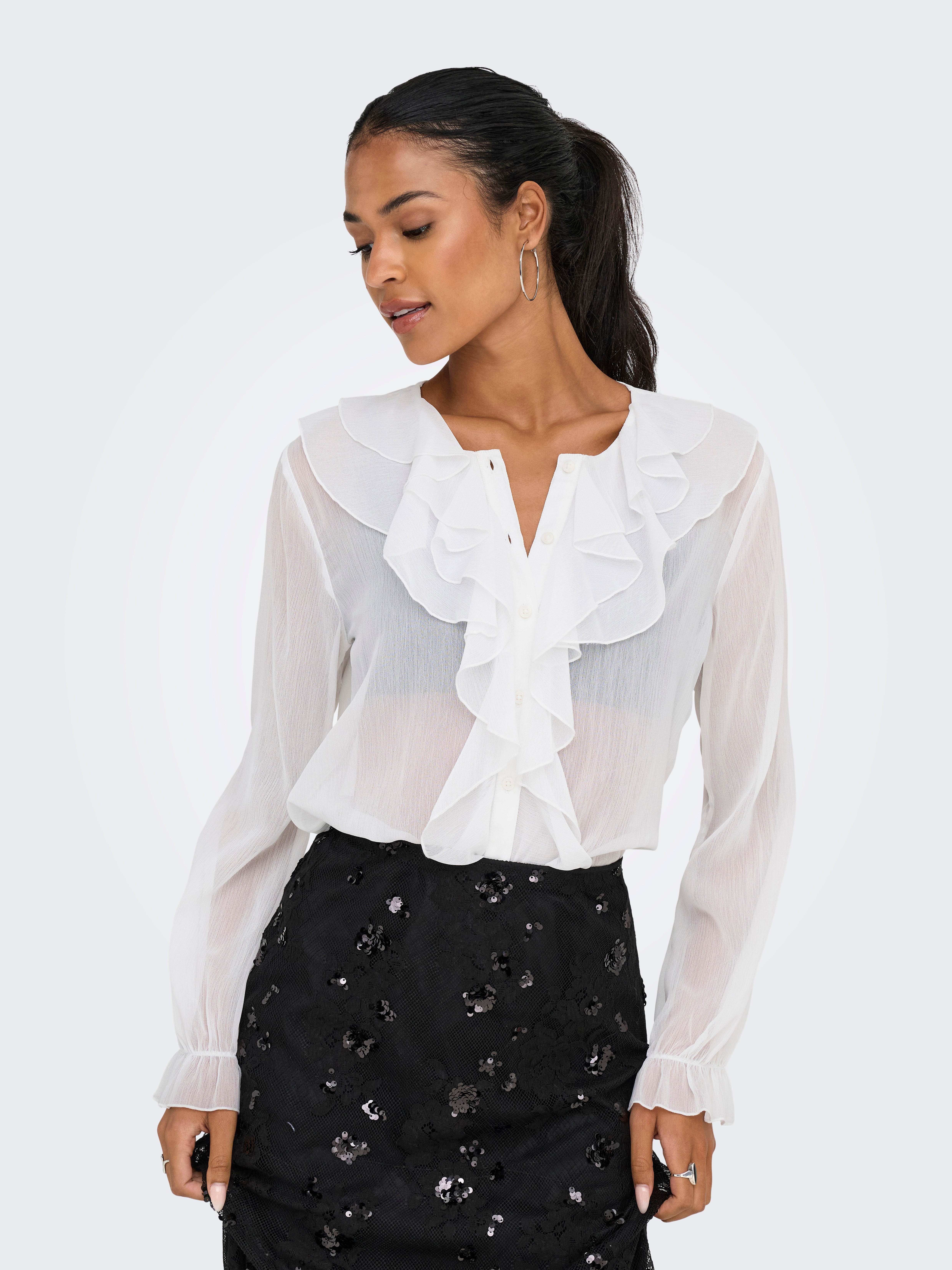 Pakeiskite savo kasdienę aprangą akimirksniu, pridėdami moterišką viršutinę dalį, kad išraiška būtų švelni ir švari.