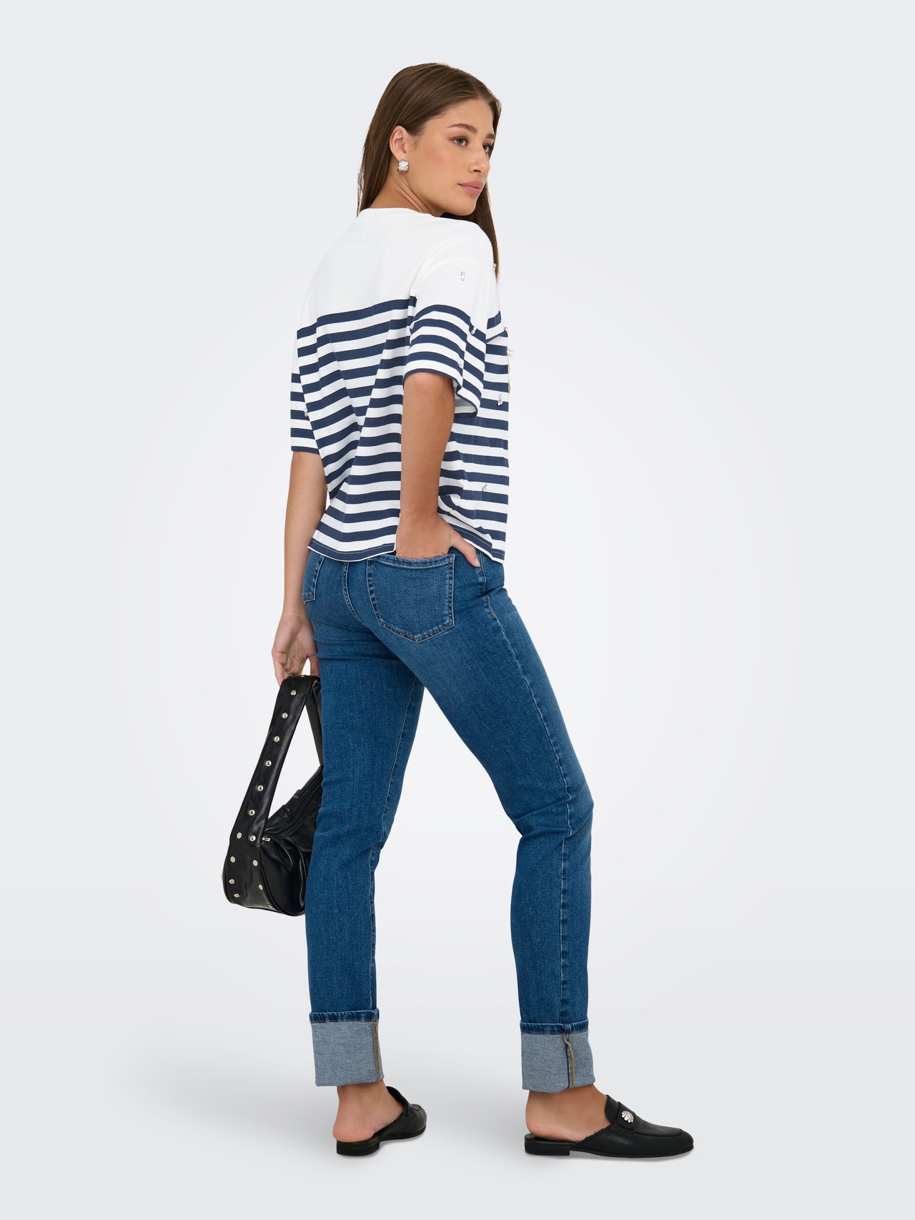 Puikiai atrodykite mokykloje, darbe ir kasdienėje veikloje šauniais stiliais, kuriuos lengva priderinti prie mėgstamiausių drabužių spintos. Medvilnė pagaminta iš natūralių pluoštų, sukuriančių minkštą, kvėpuojantį audinį. - Produkto tipas : Marškinėliai - Kaklas : Apskrita apykaklė - Rankovė : Trumpos rankovės - Rankovės : Box rankovės - Papildomos detalės : Krištolo akmenys - Tinkamas : Box kirpimas