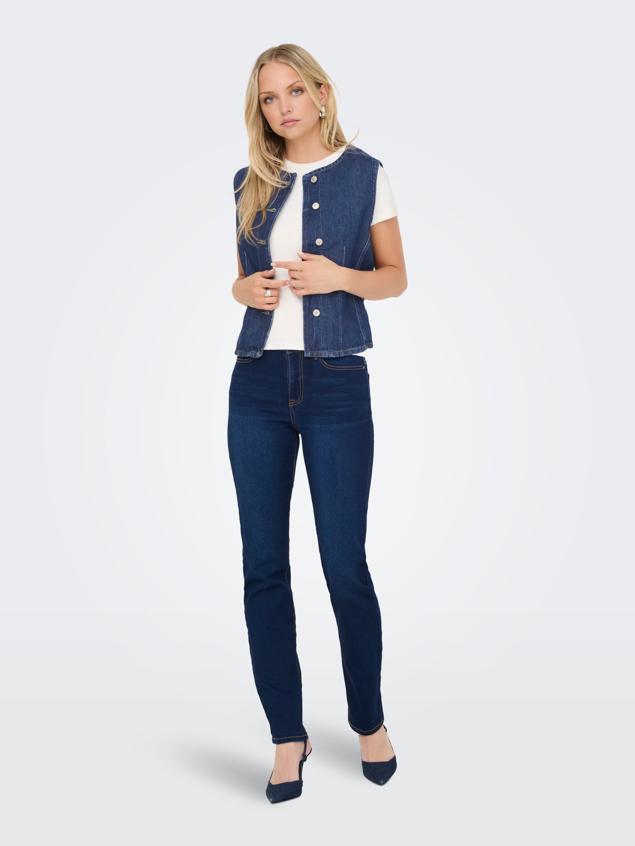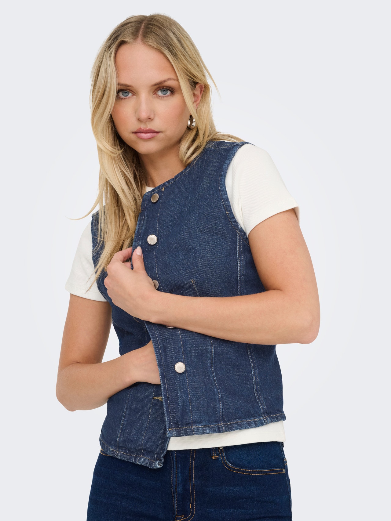 Niekas nepranoksta džinsinio audinio – nesenstanti tendencija priklauso bet kokiam garderobui ir puikiai atrodo su kontrastingais baltais drabužiais arba derinama su kitų džinsų stilių, kad atrodytų smagiai, stilingai. - Produkto tipas : Liemenė - Kaklas : Apskrita apykaklė - Rankovė : Be rankovių - Užsegimas : Užsegimas sagomis - Papildomos detalės : Dygsniavimo detalė - Tinkamas : Priglundantis kirpimas - Gyvensena : Tradicinių