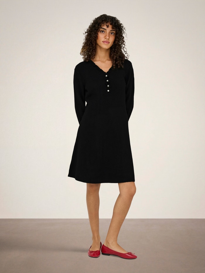 Paruoškite savo garderobą šaltoms dienoms su gražia megzta suknele, puikiai derinama su pėdkelnių ar džinsų pora.