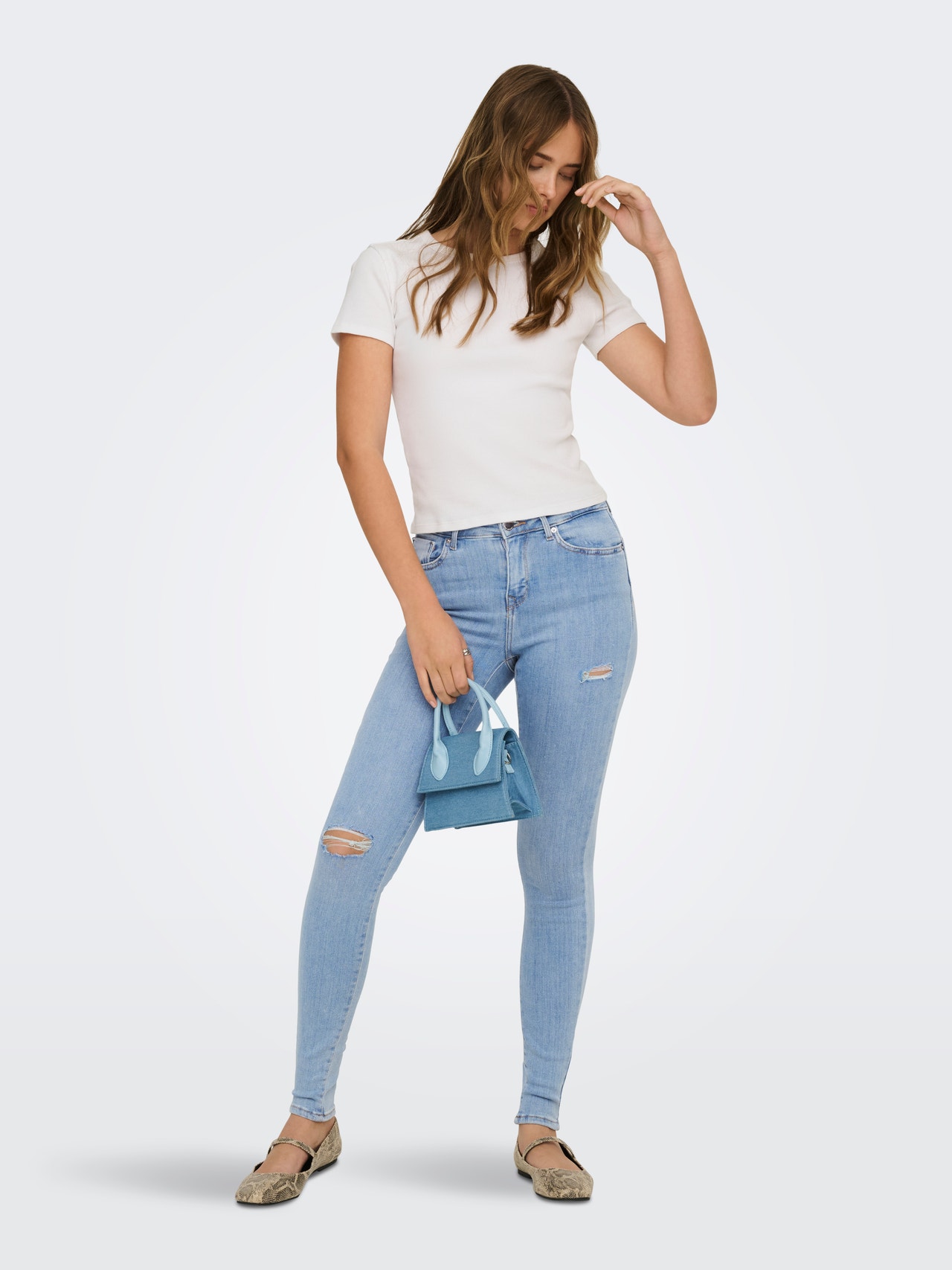 ONLPOWER Vidutinio aukščio juosmuo Aptemptas kirpimas Džinsai