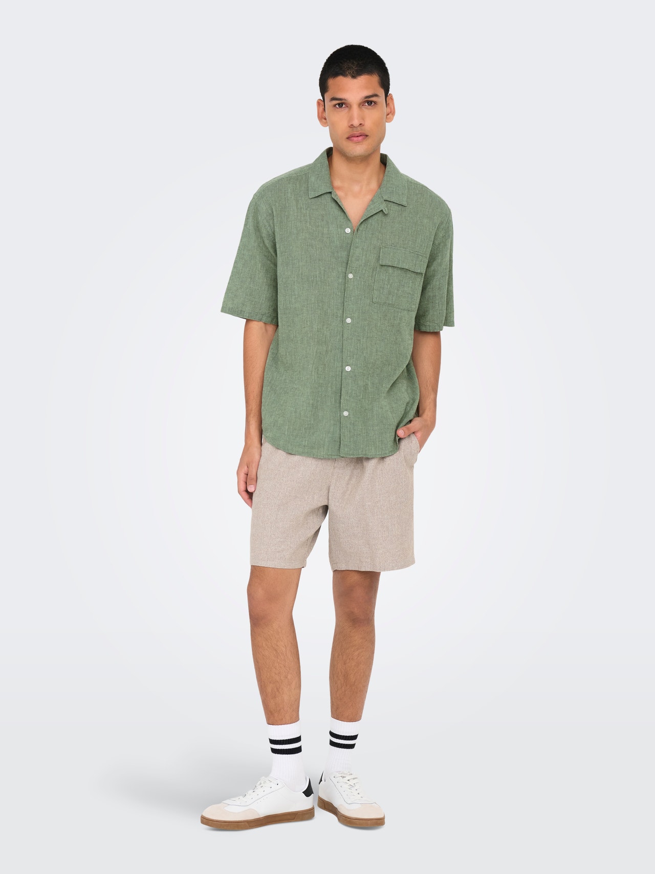 - Pagrindinis audinys: 45% Linas, 35% Medvilnė, 20% Perdirbta medvilnė