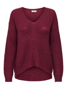 Adīt fit V-kakls Rievotas aproces Nokrituši pleci Pulovers