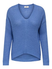 Adīt fit V-kakls Rievotas aproces Nokrituši pleci Pulovers