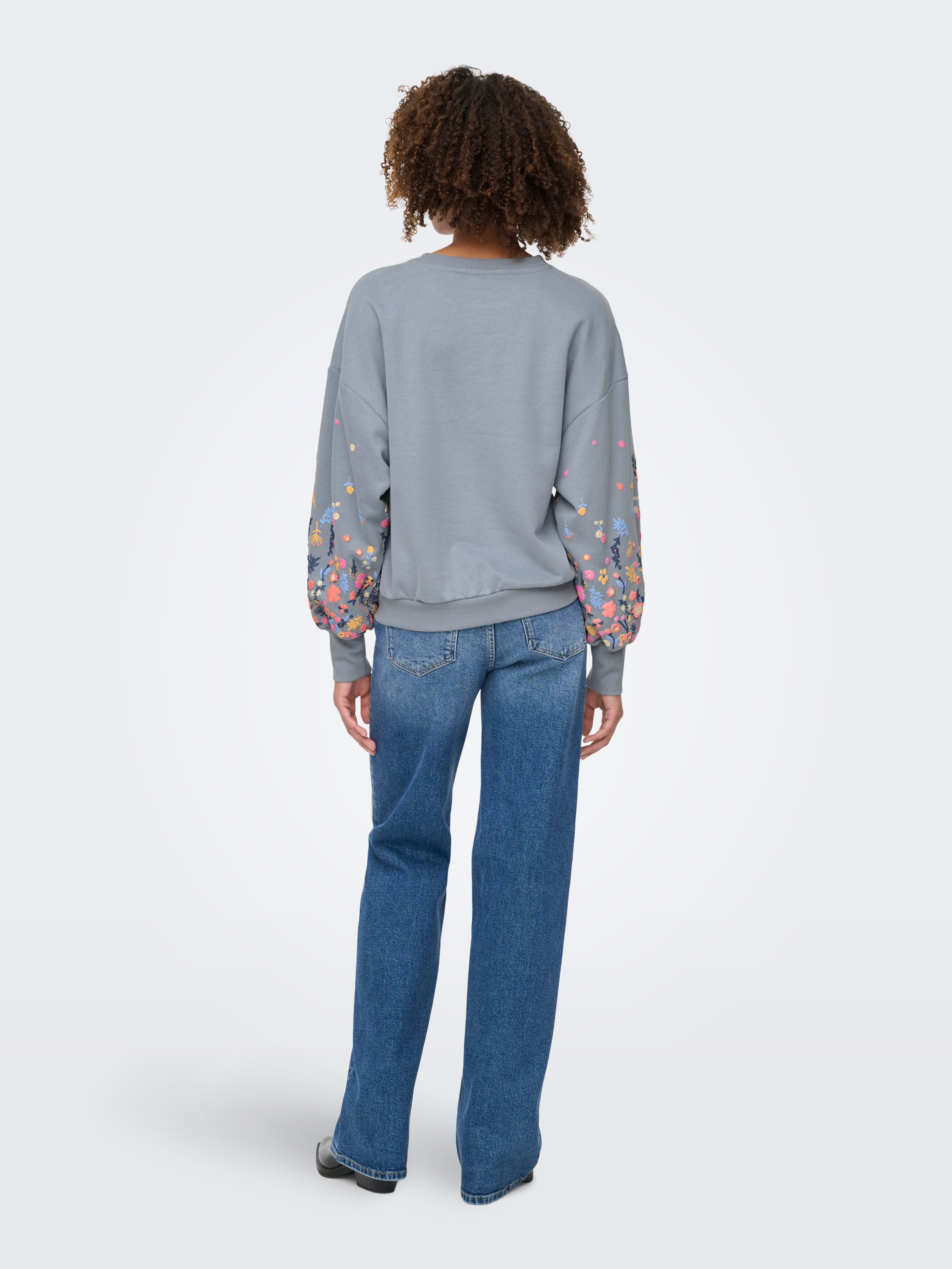 Regulāra piemērotība O-kakls Rievotas aproces Nokrituši pleci Sporta krekls