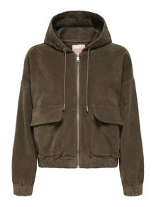 Hood w. Stīgu regulēšana Aproces ar elastīgu iesiešanu Nokrituši pleci Jaka