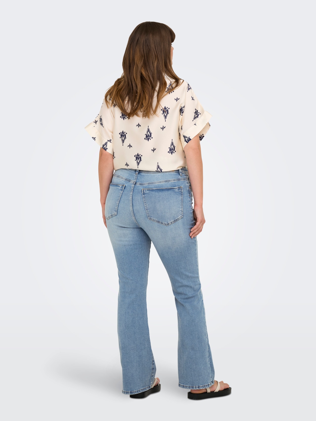 - Ietilptu : Šie uzliesmojušie pieguļošie džinsi apskauj jūsu gurnus un augšstilbus un izplešas no ceļgala uz leju