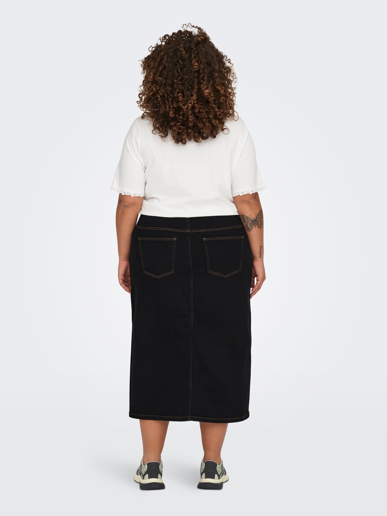 Nothing beats denim - the timeless trend belongs in any wardrobe and looks great with contrasting white items or matched with other denim styles for a fun, stylish look. ONLY CARMAKOMA is an international fashion brand for curvy women size 42-54, creating styles that accentuate all the benefits of the beautiful, feminine, curvy silhouette to make you look stunning all day, every day. - Product Type : Skirt - Closing : Button fastening, Zip fastening - Pockets : Front pockets - Waist : High waist - Length/Size : Midi length - Extra details : Side slits - Wash/Finish : Gently washed dark denim look