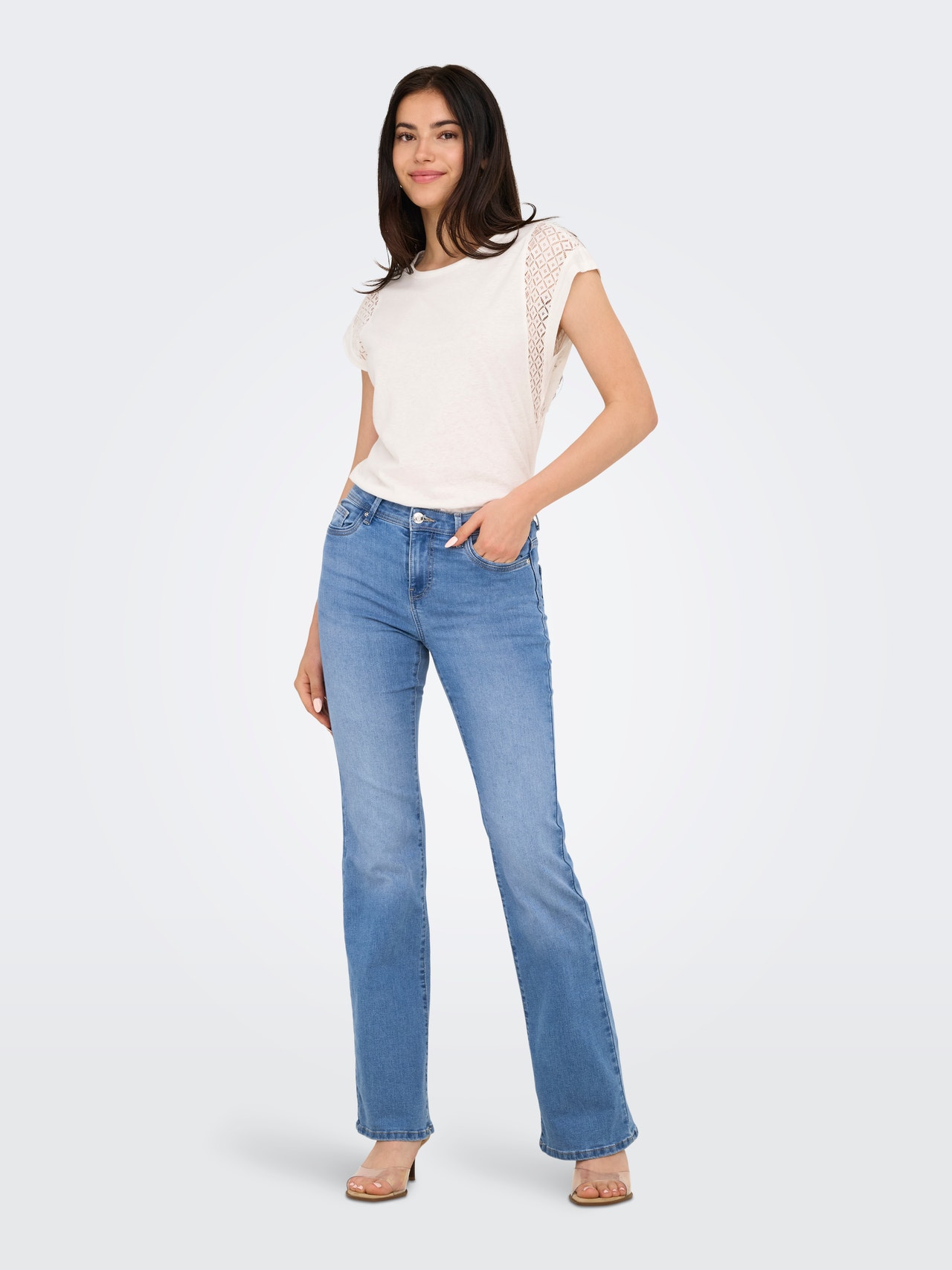 ONLWOW Vidukļa vidusdaļa Uzliesmojis fit Džinsi