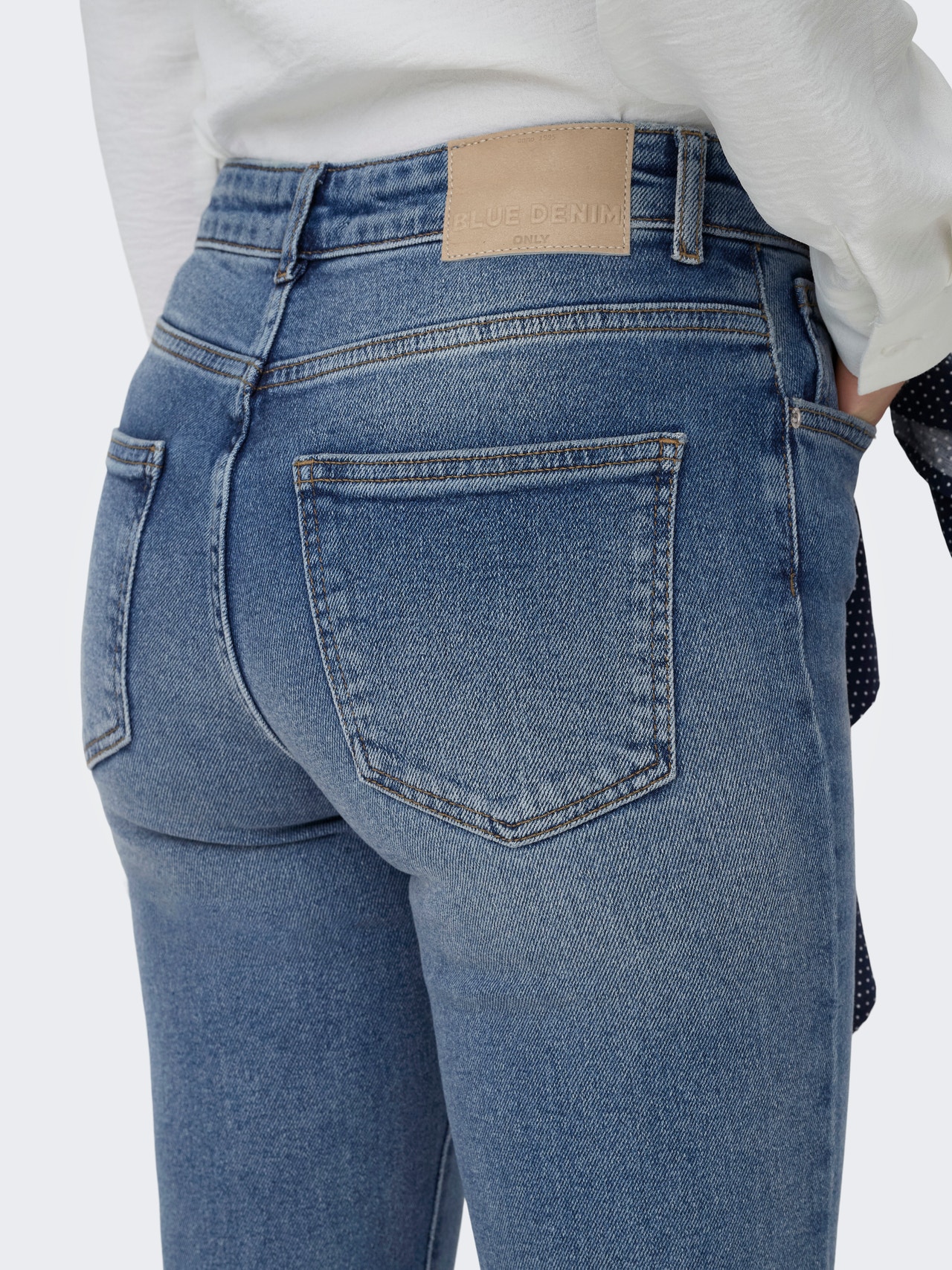 Elastīgajam kokvilnas džinsam ir pievienota elastība papildu komfortam.