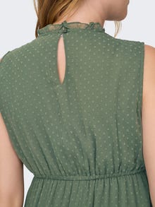 - Product Type : Dress - Neck : Round Neck - Sleeve : Sleeveless - Closing : Button fastening - Extra details : Cutline at waist, Elasticated waist, Lace detail - Fit : Regular Fit