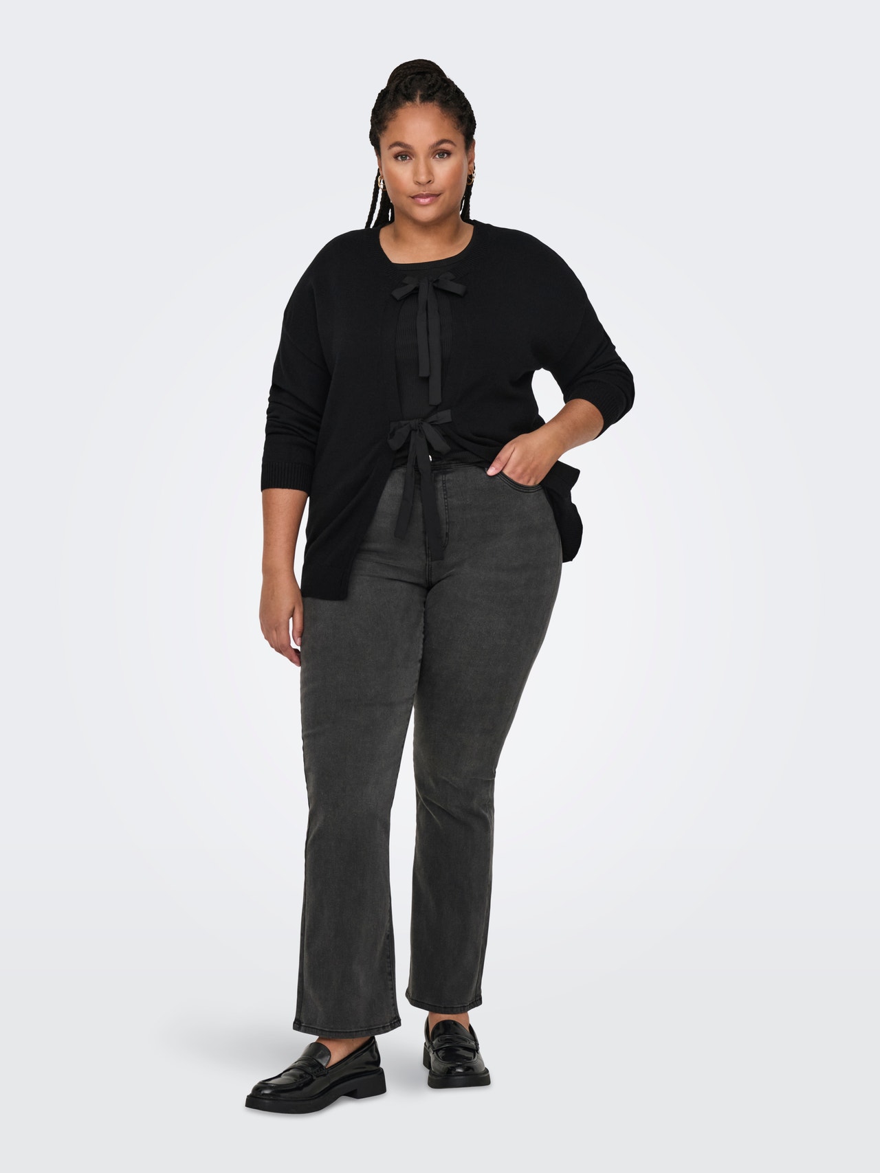 - Ietilptu : Izliekti uzliesmojoši pieguļoši džinsi, kas apskauj gurnus un augšstilbus un izplešas no ceļgala uz leju