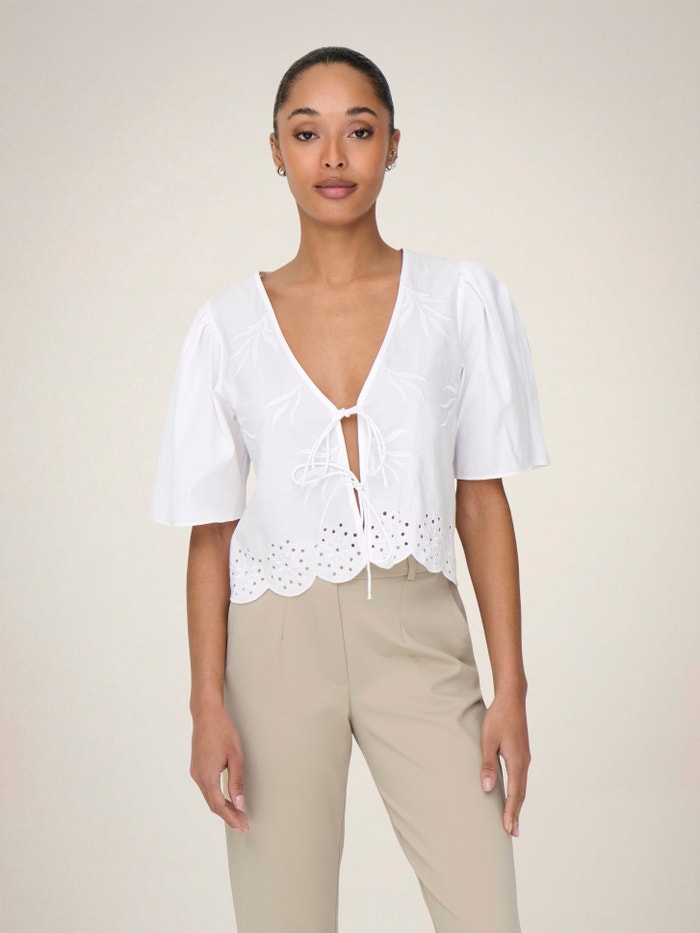 Mainiet ikdienas apģērbu sekundes laikā, pievienojot sievišķīgu topu maigai, tīrai izteiksmei.