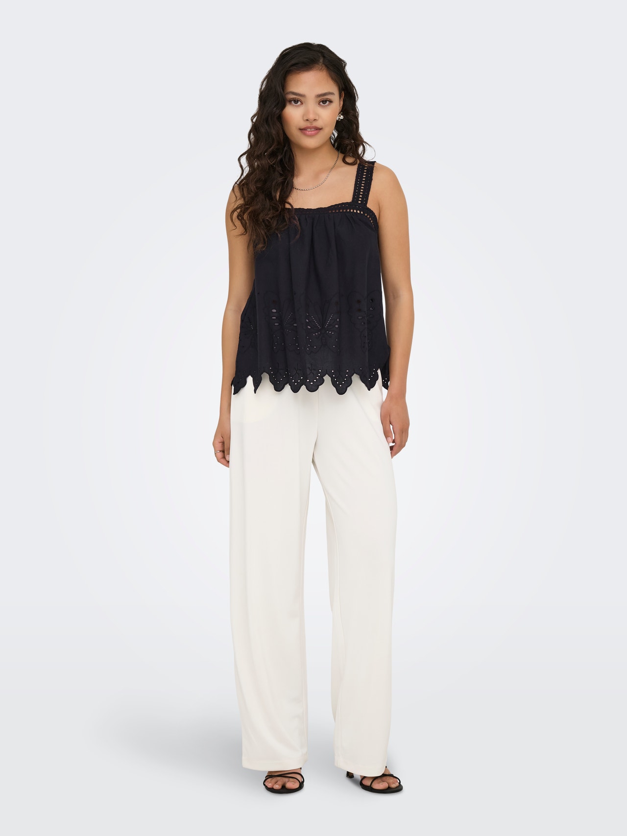 Mainiet ikdienas apģērbu sekundes laikā, pievienojot sievišķīgu topu maigai, tīrai izteiksmei.