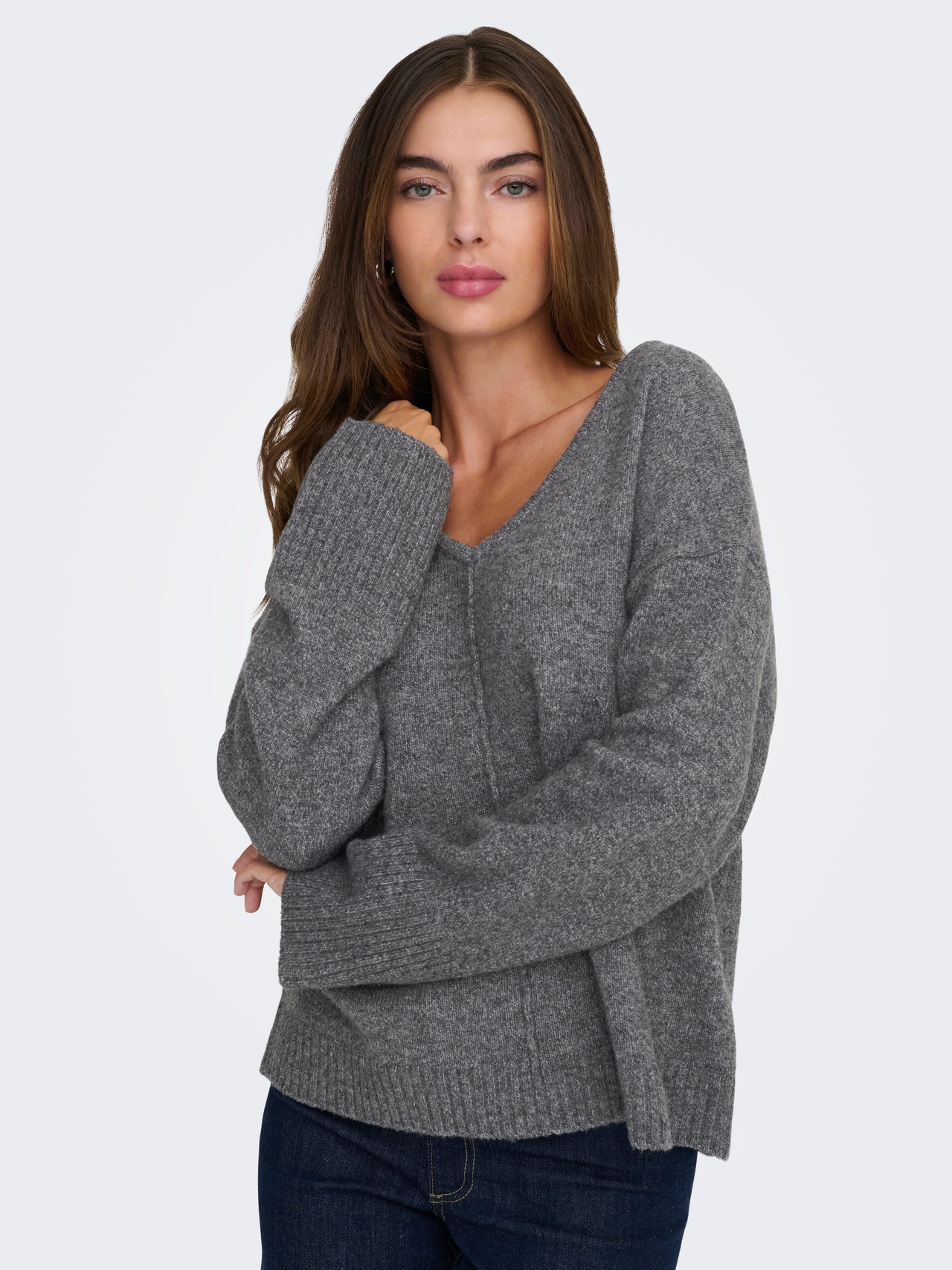 Palieciet silti un mājīgi ar mīkstu trikotāžas stilu, kas ir lieliski piemērots jebkuram gadījumam un sezonai. - Produkta veids : Trikotāžas pulovers - Kakls : V-kakls - Piedurkne : Garās piedurknes (L / S) - Aproces : Rievotas aproces - Ietilptu : Regulāra piemērotība