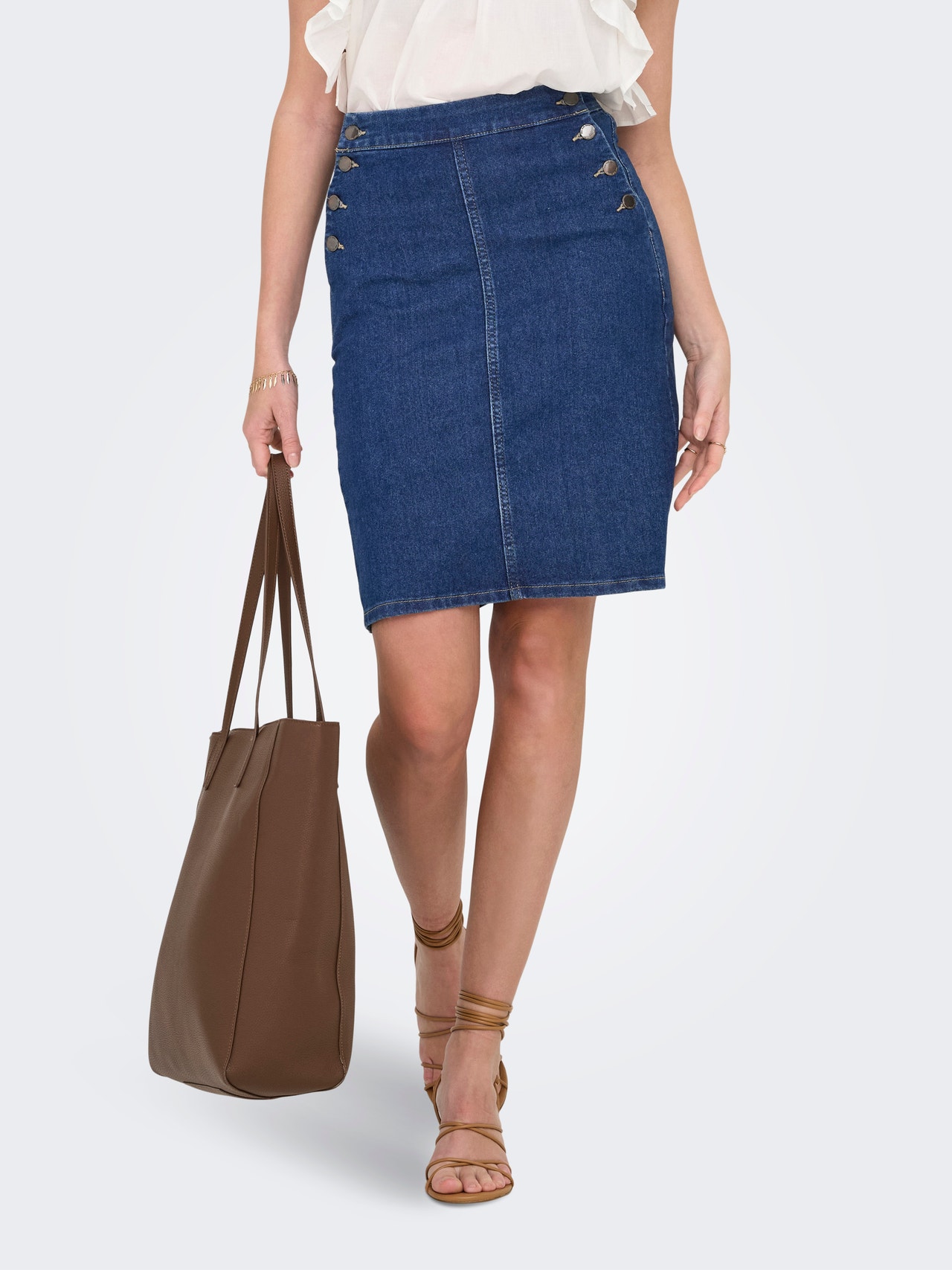 Atgrieziet savā garderobē klasiku ar džinsa svārkiem, kas lieliski pieskaņoti jūsu iecienītākajam topam un trenažieru pārim.