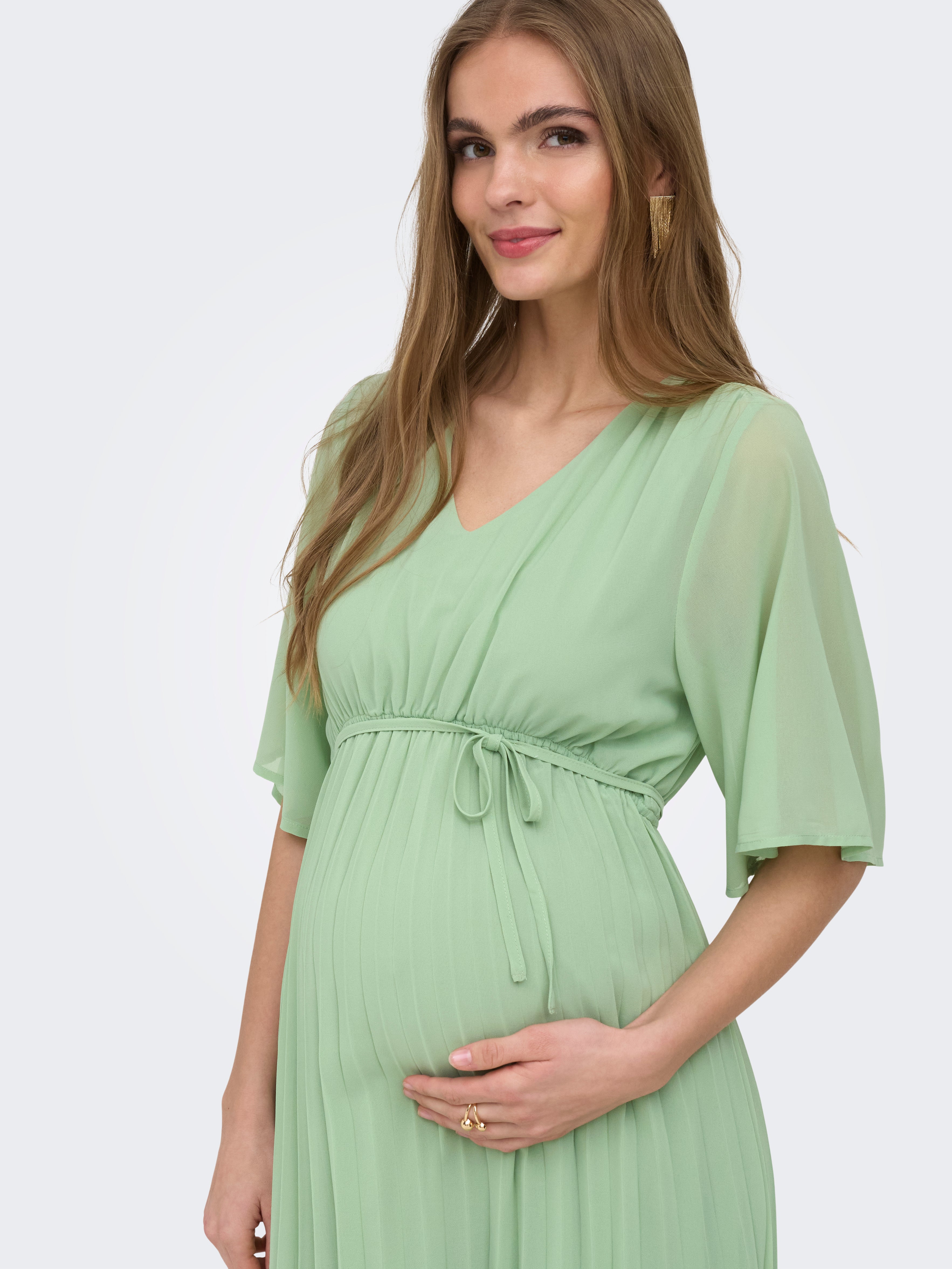 Maternitātes stili ir paredzēti, lai piemērotu un atbalstītu grūtnieces ķermeni. Izvēlieties savu parasto izmēru, lai iegūtu glaimojošu izskatu.