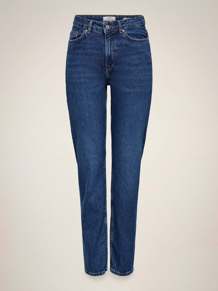 JDYPETRA Augsts viduklis Taisni piemērots Šiem džinsiem sākotnēji vajadzētu būt cieši pieguļošiem, jo laika gaitā tie izstiepsies un pielāgosies jūsu ķermenim. Lai tie labāk piegulētu, apsveriet iespēju izvēlēties mazāku izmēru Džinsi