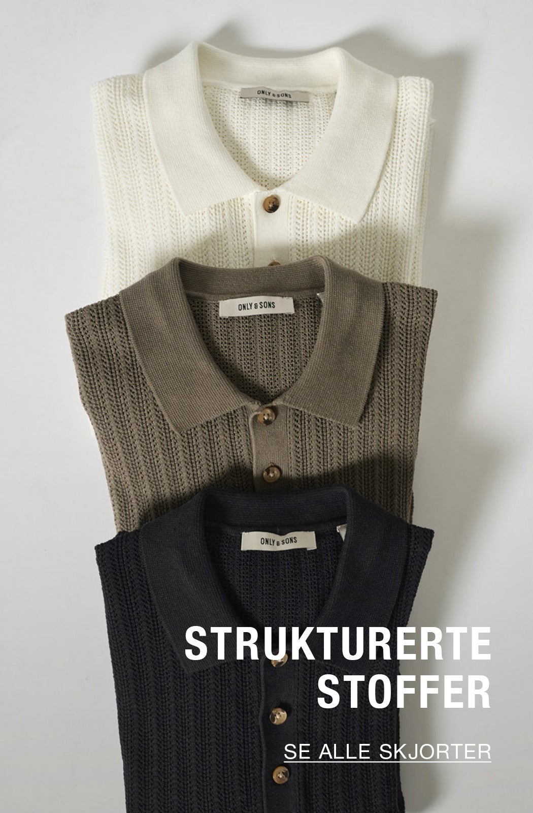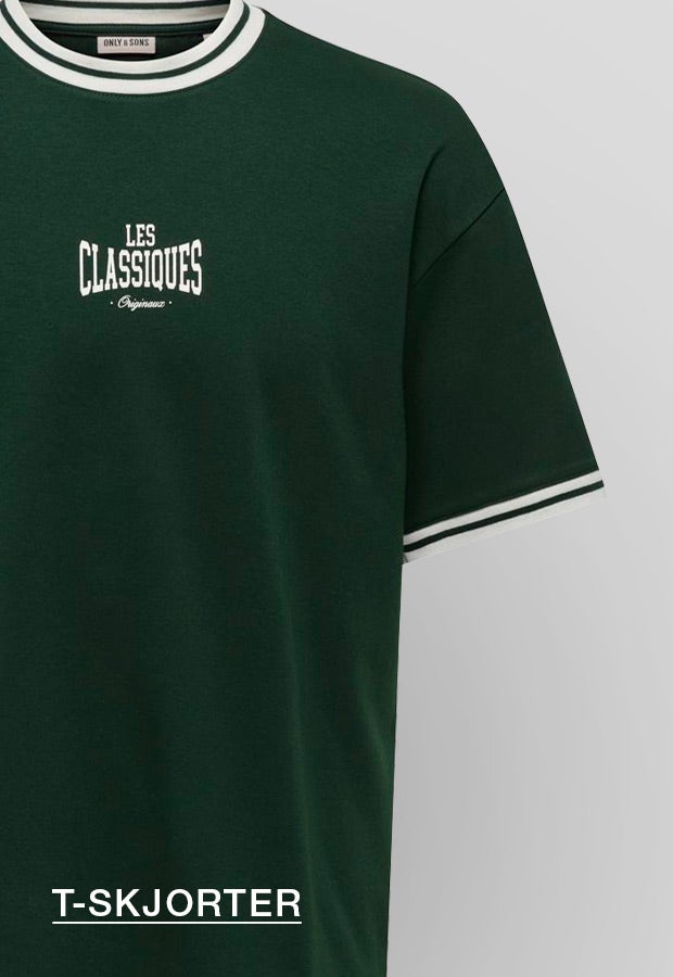 ONLY & SONS, som er en del av ONLY-familien, tilbyr oppdatert mote til herre. Enten du ønsker å kle deg avslappet til helgen, sette sammen en stilig business-casual look eller gjøre deg klar til en kveld på byen, har vår kolleksjon de perfekte plaggene til enhver anledning. Vi gjør det enkelt å skape antrekk som er både stilige og komfortable, slik at du